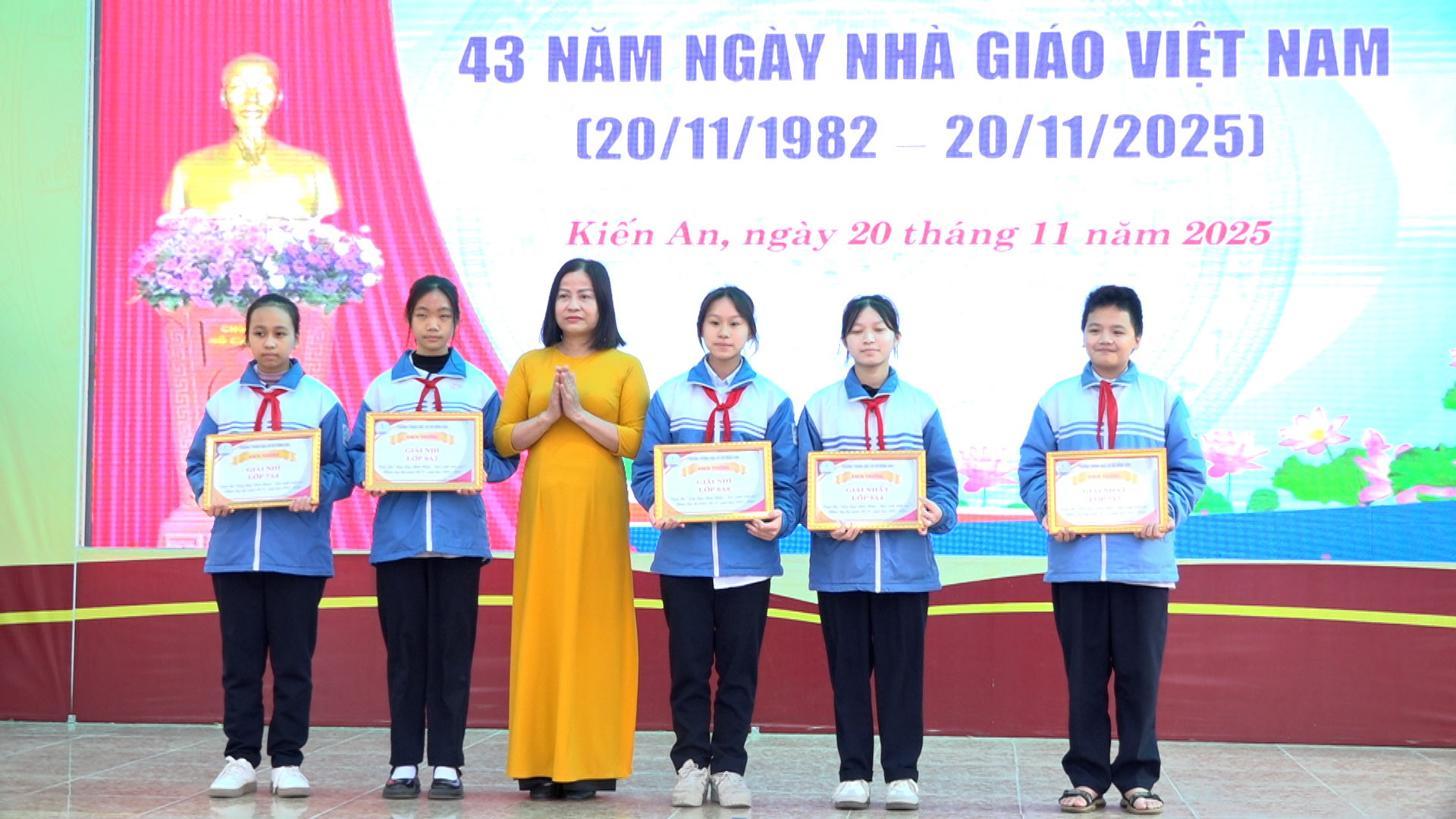 Chào mừng kỷ niệm 43 năm Ngày nhà giáo Việt Nam, nhà trường đã tổ chức nhiều hoạt động thiết thực thu hút sự tham gia tích cực của các thầy cô giáo và các em học sinh. Tại buổi kỷ niệm, nhà trường đã trao thưởng cho giáo viên tham gia thi Giáo viên giỏi cấp trường; 13 học sinh đạt giải Cuộc thi viết về mái trường, 5 tập thể lớp đạt giải cuộc thi Tiếng hát về mái trường và 04 tập thể lớp đạt giải Hội thi lớp đẹp - thân thiện.