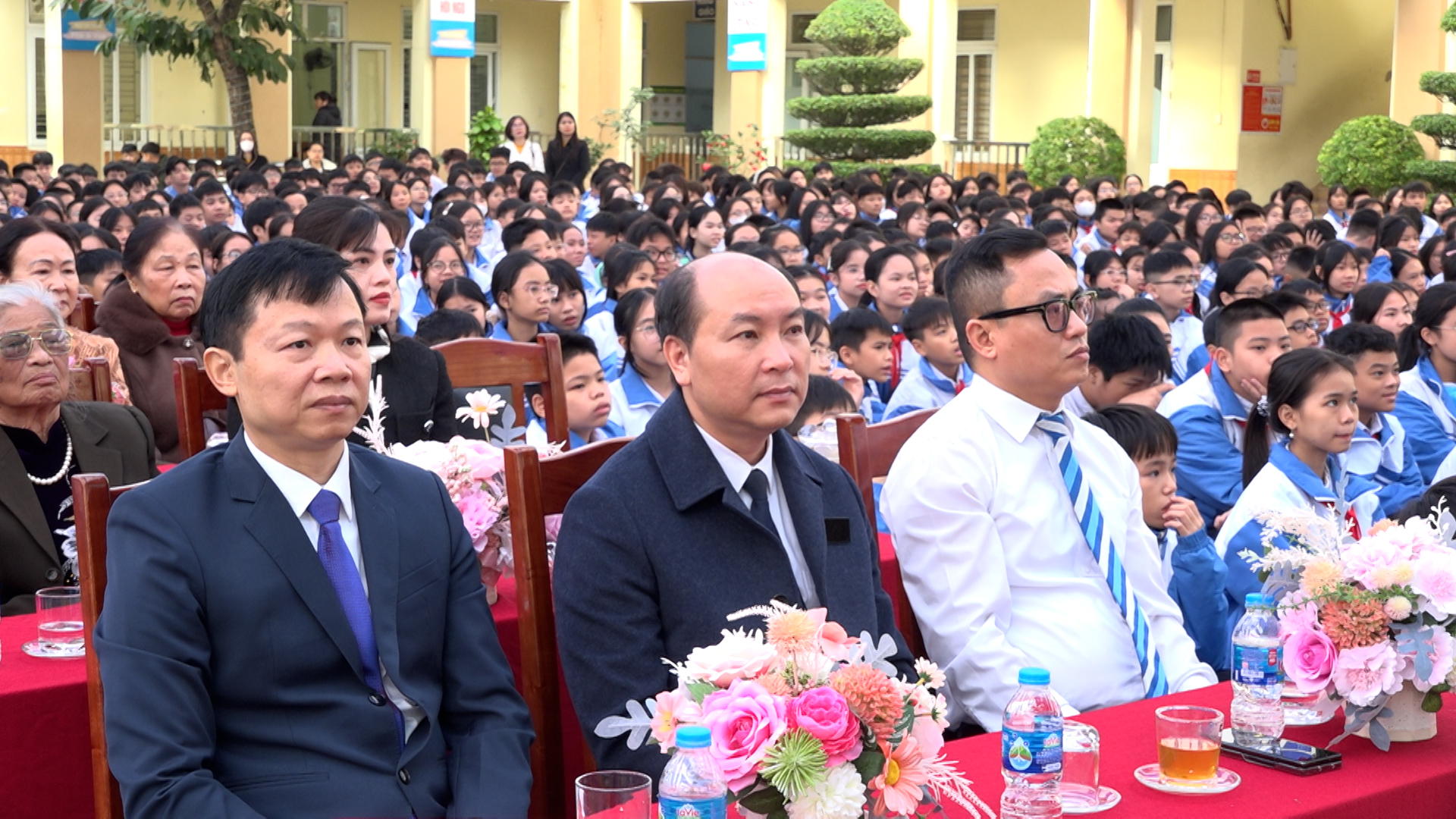 Trong không khí trang trọng, thầy giáo Lê Văn Hùng - Bí thư chi bộ, Hiệu trưởng nhà trường đọc diễn văn ôn lại truyền thống ngày Nhà giáo Việt Nam 20/11; đồng thời gửi lời tri ân sâu sắc đến các thế hệ cán bộ quản lý, thầy cô giáo đã dành nhiều tâm huyết, trí tuệ và tình yêu nghề để xây dựng thương hiệu giáo dục của nhà trường.