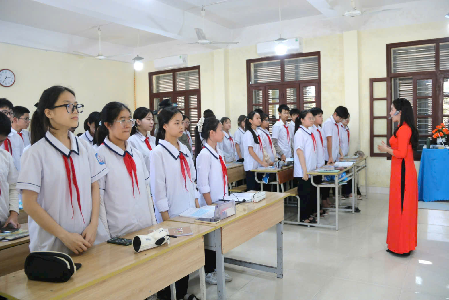 Cô giáo Nguyễn Thị Thanh Thảo và các em học sinh lớp 8A2 Trường THCS Nam Hà thực hiện tiết dạy chuyên đề