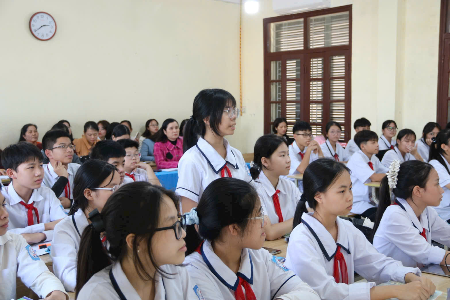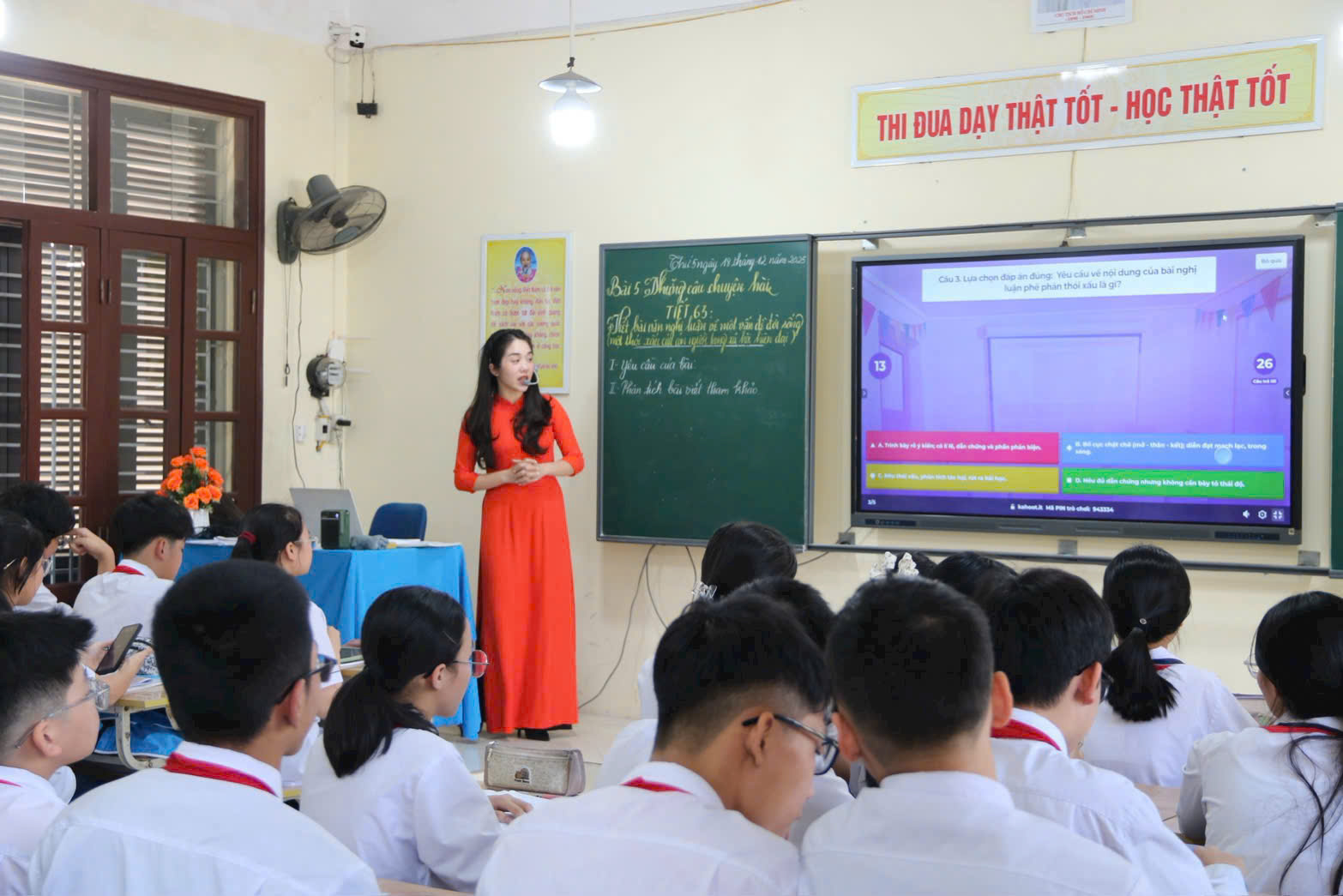 Trong tiết dạy minh họa tại lớp 8A2, cô giáo Nguyễn Thị Thanh Thảo đã tổ chức bài học Viết bài văn nghị luận trình bày ý kiến về một vấn đề đời sống (thói xấu của con người trong xã hội hiện đại)” theo quy trình khoa học, linh hoạt, chú trọng phát triển năng lực số cho học sinh thông qua từng hoạt động học tập.