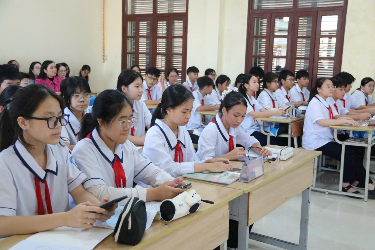 Chiều ngày 18/12, Trường THCS Nam Hà tổ chức chuyên đề “Tích hợp phát triển năng lực số cho học sinh trong dạy học môn Ngữ văn 8”. Tham dự chuyên đề có  đại diện Ban giám hiệu, Tổ trưởng chuyên môn, Giáo viên giảng dạy môn Ngữ Văn 8 các trường THCS trên địa bàn phường, Ban đại diện cha mẹ học sinh lớp 8A2.