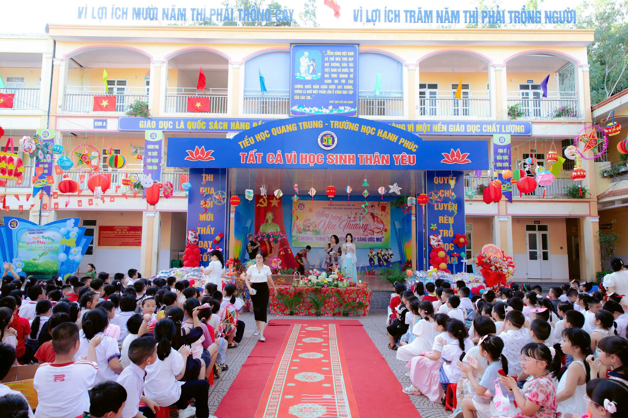 Trong không khí rộn ràng của Tết Trung thu, Trường Tiểu học Quang Trung vừa tổ chức chương trình “Lồng đèn thắp sáng ước mơ” với chủ đề “Vầng trăng yêu thương”. Tham dự chương trình có đồng chí Phạm Hùng – Phó Chủ tịch Uỷ ban MTTQ Việt Nam phường, Bí thư Đoàn phường; Ban đại diện cha mẹ học sinh, Ban Giám hiệu nhà trường, cùng đông đảo các bậc phụ huynh và học sinh toàn trường.