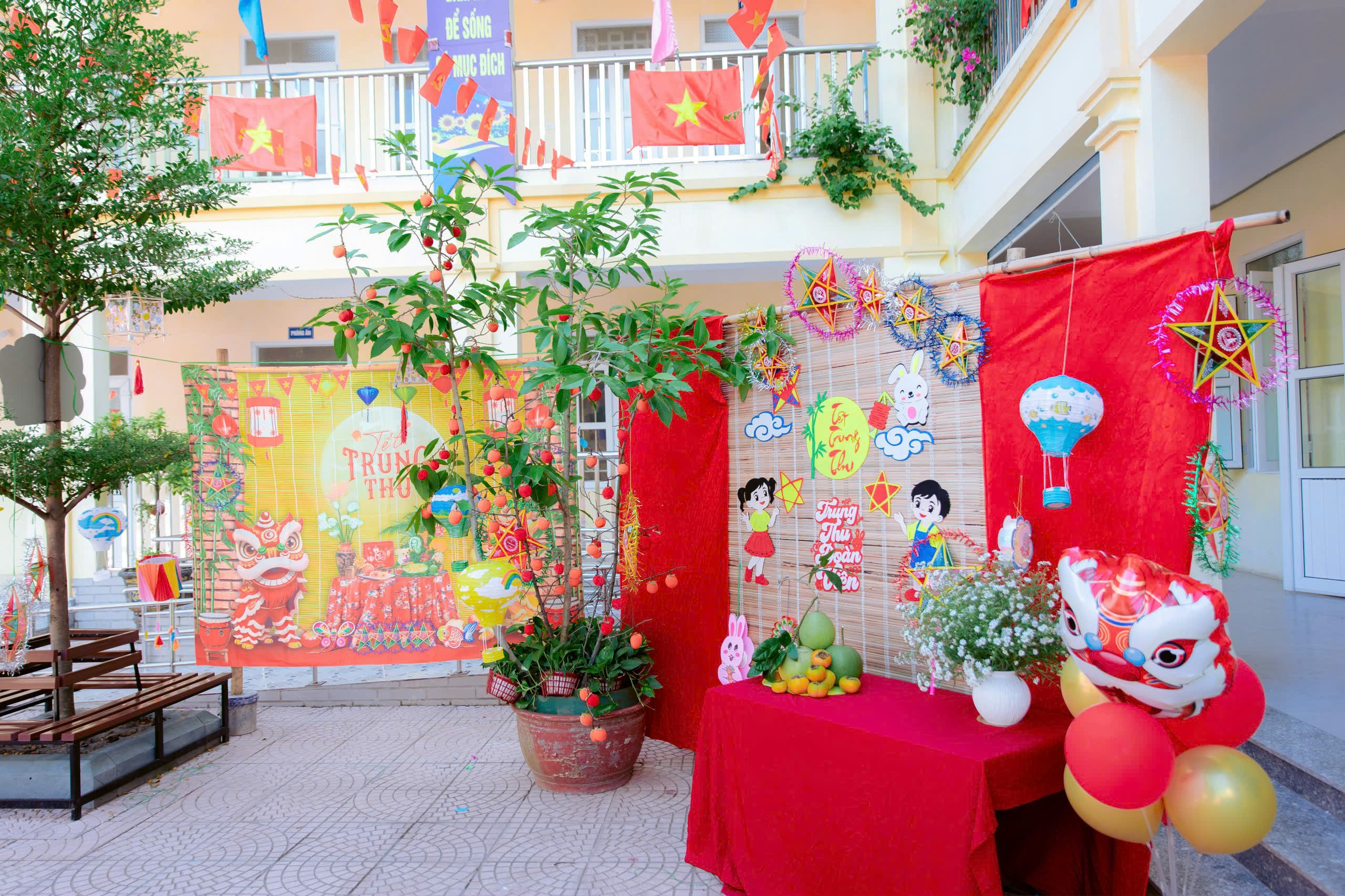 Góc sân trường được trang trí rực rỡ đón Tết Trung thu