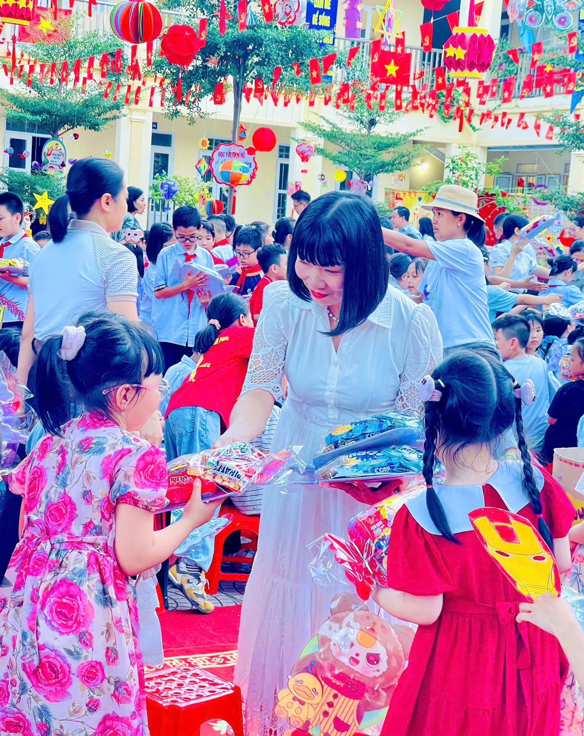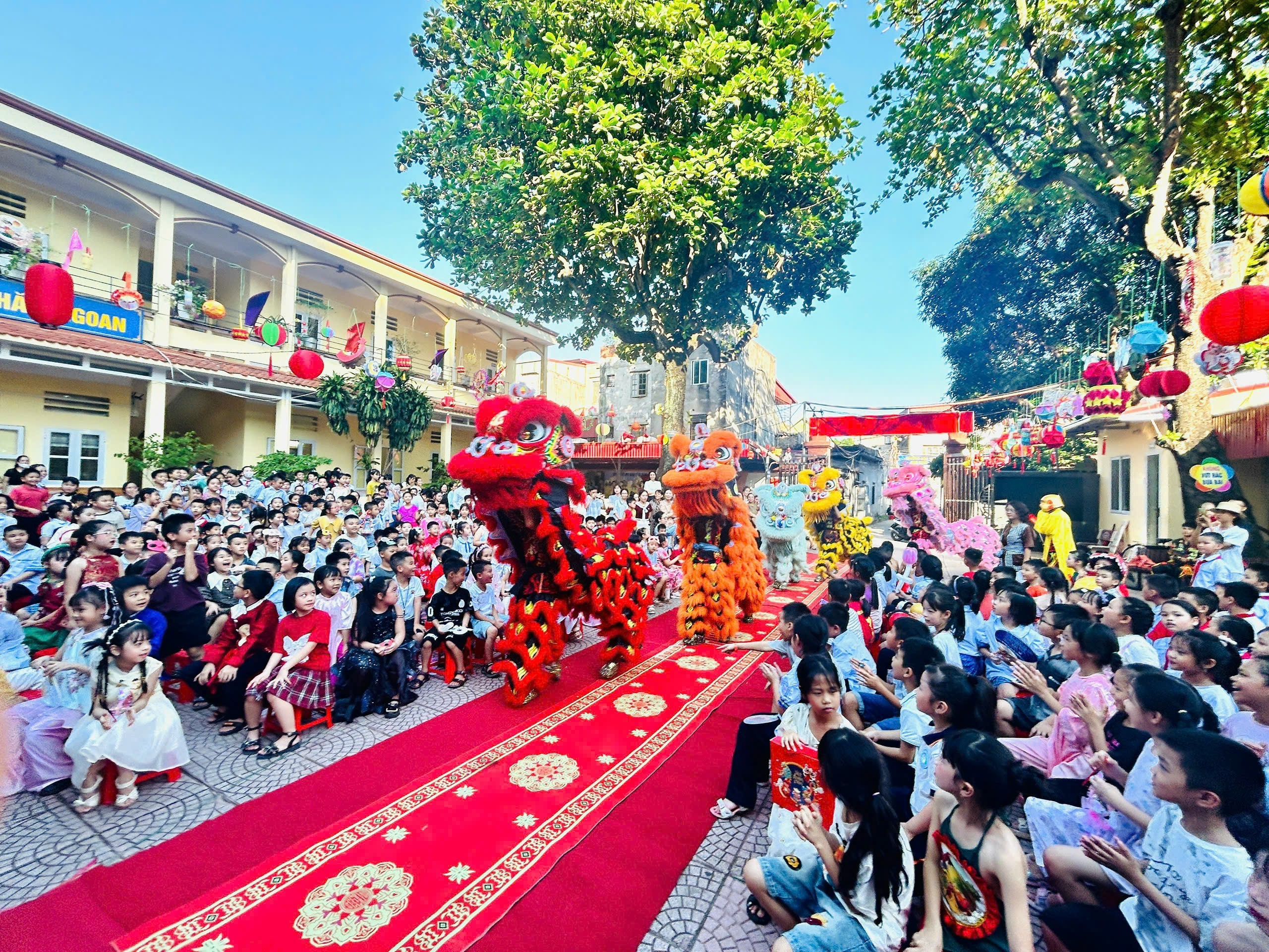 Ngay từ đầu chương trình, sân trường rực rỡ cờ hoa, đèn lồng và sắc màu lung linh. Các em nhỏ háo hức chờ đón sự xuất hiện của chị Hằng và chú Cuội, hai nhân vật quen thuộc của đêm hội trăng rằm. Hoạt cảnh mở màn sôi động cùng các tiết mục văn nghệ đặc sắc do chính học sinh nhà trường biểu diễn đã mang đến không khí vui tươi, phấn khởi.