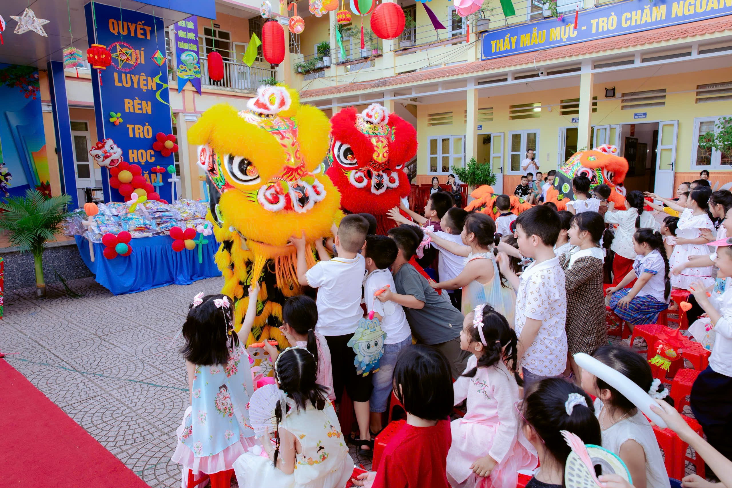 Màn múa lân rộn ràng đã mang đến cho các em học sinh niềm hân hoan và ký ức đẹp về một mùa trăng ý nghĩa. Các em được phá cỗ Trung thu trong không khí ấm áp, đoàn viên.