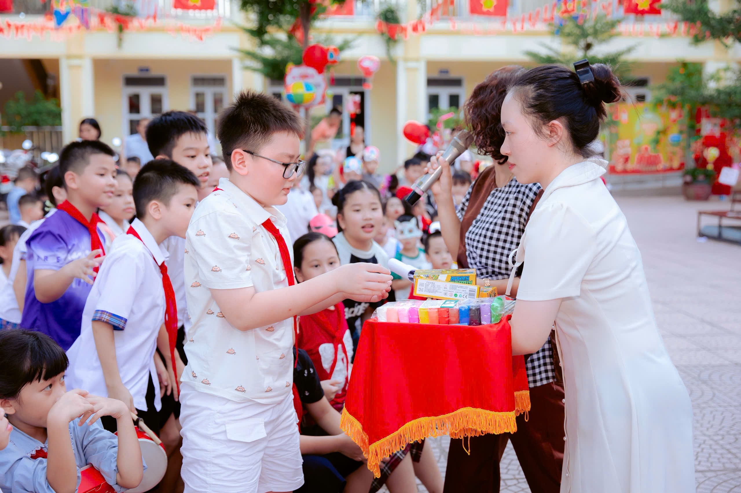 Sau phần giao lưu của chị Hằng và chú Cuội, các em học sinh đã hào hứng tham gia những trò chơi vui nhộn như “Trăng tròn – Trăng khuyết”, “Ai nhanh hơn” và trả lời câu đố về ý nghĩa của Tết Trung thu. Tiếng cười vang khắp sân trường khi các em học sinh hào hứng thi tài, nhận những phần quà ý nghĩa.
