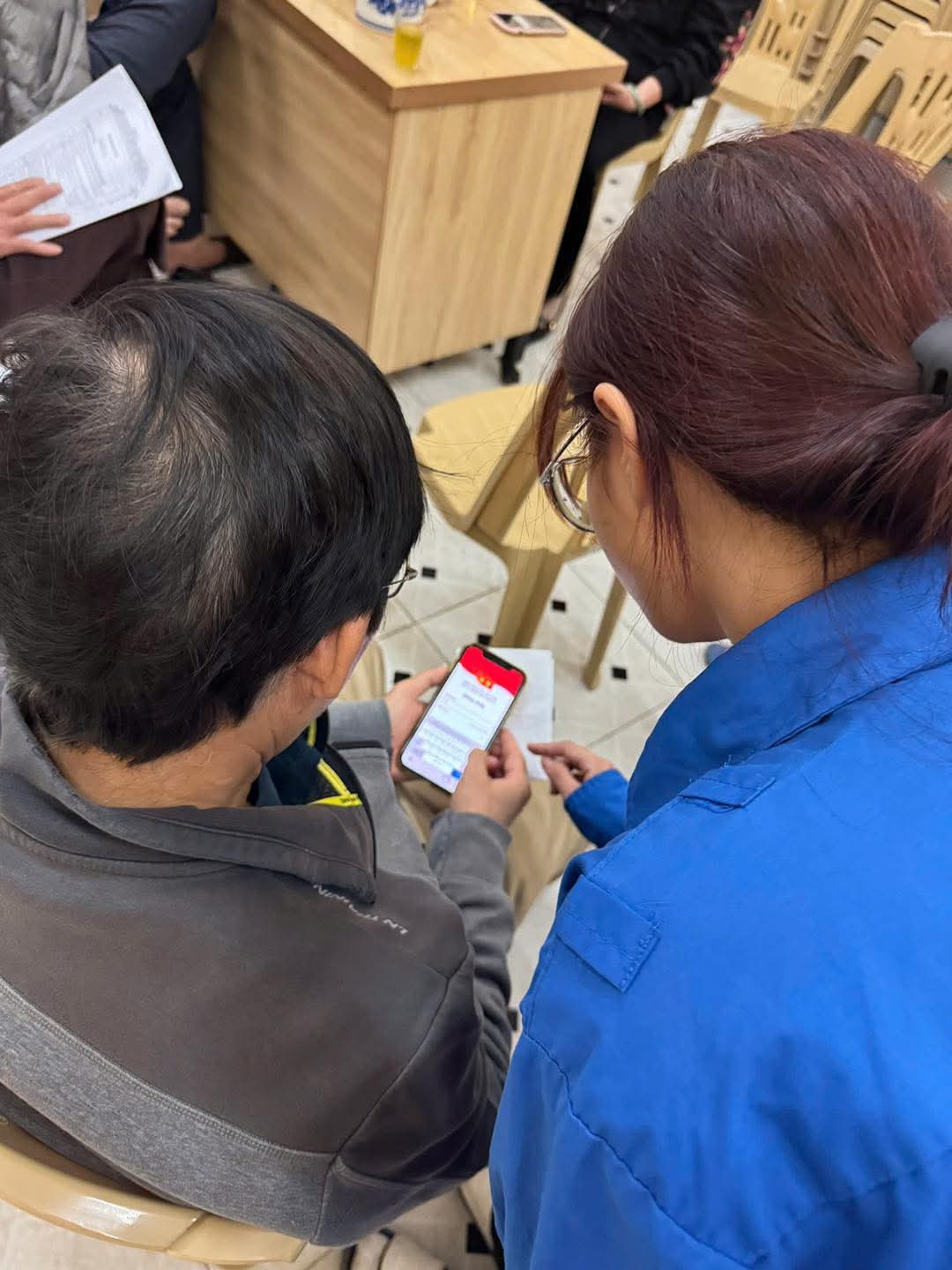 Tại các điểm sinh hoạt cộng đồng, nhà văn hoá các tổ dân phố, đoàn viên, thanh niên phường đã tích cực tham gia hướng dẫn, cài đặt ứng dụng Sổ tay Đảng viên điện tử trên điện thoại thông minh cho các đảng viên. Đồng thời giải đáp các thắc mắc và giới thiệu những tiện ích nổi bật của nền tảng số này, giúp đảng viên dễ dàng tra cứu tài liệu, theo dõi nhiệm vụ, và cập nhật thông tin liên quan đến công tác sinh hoạt chi bộ.