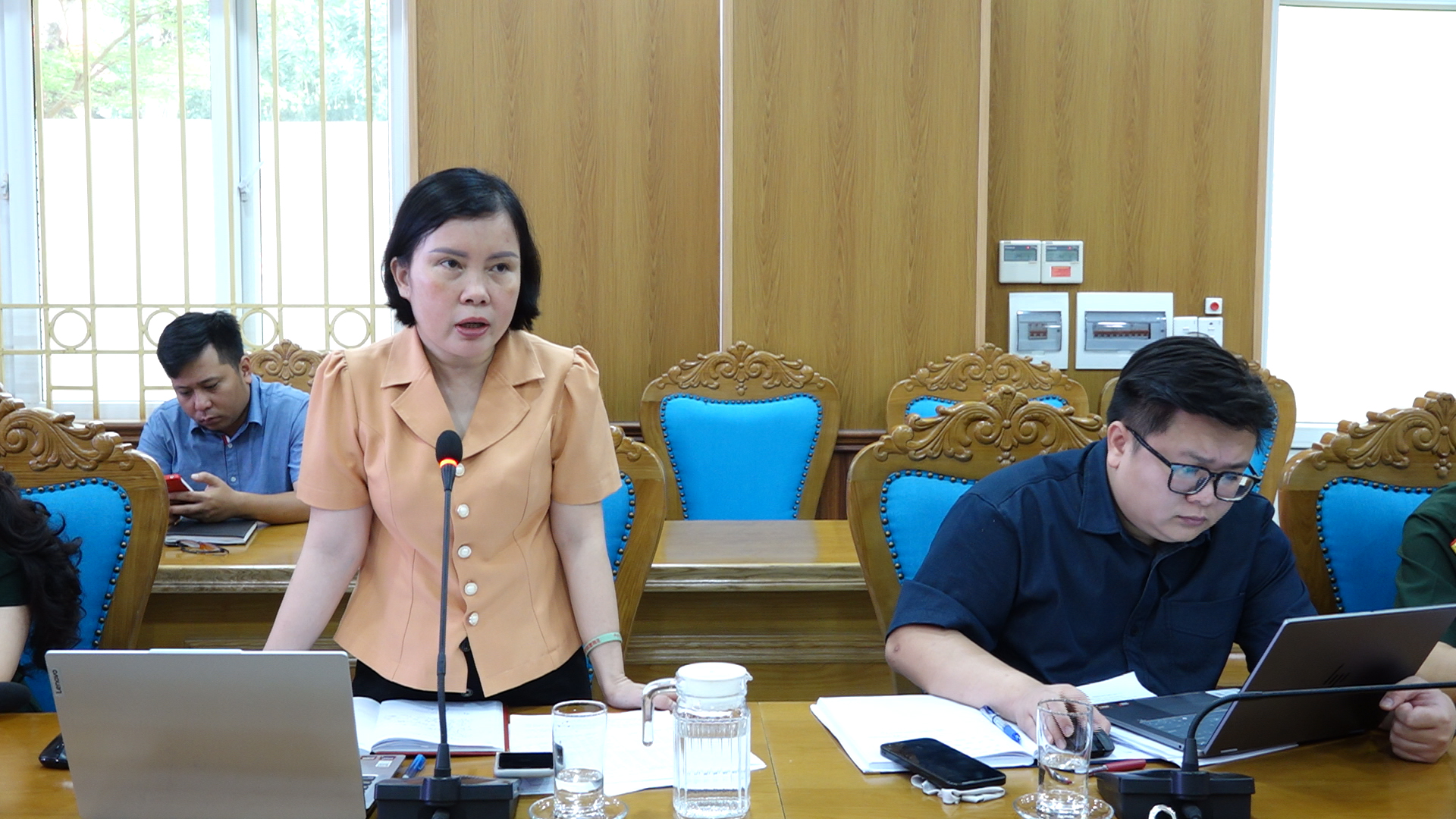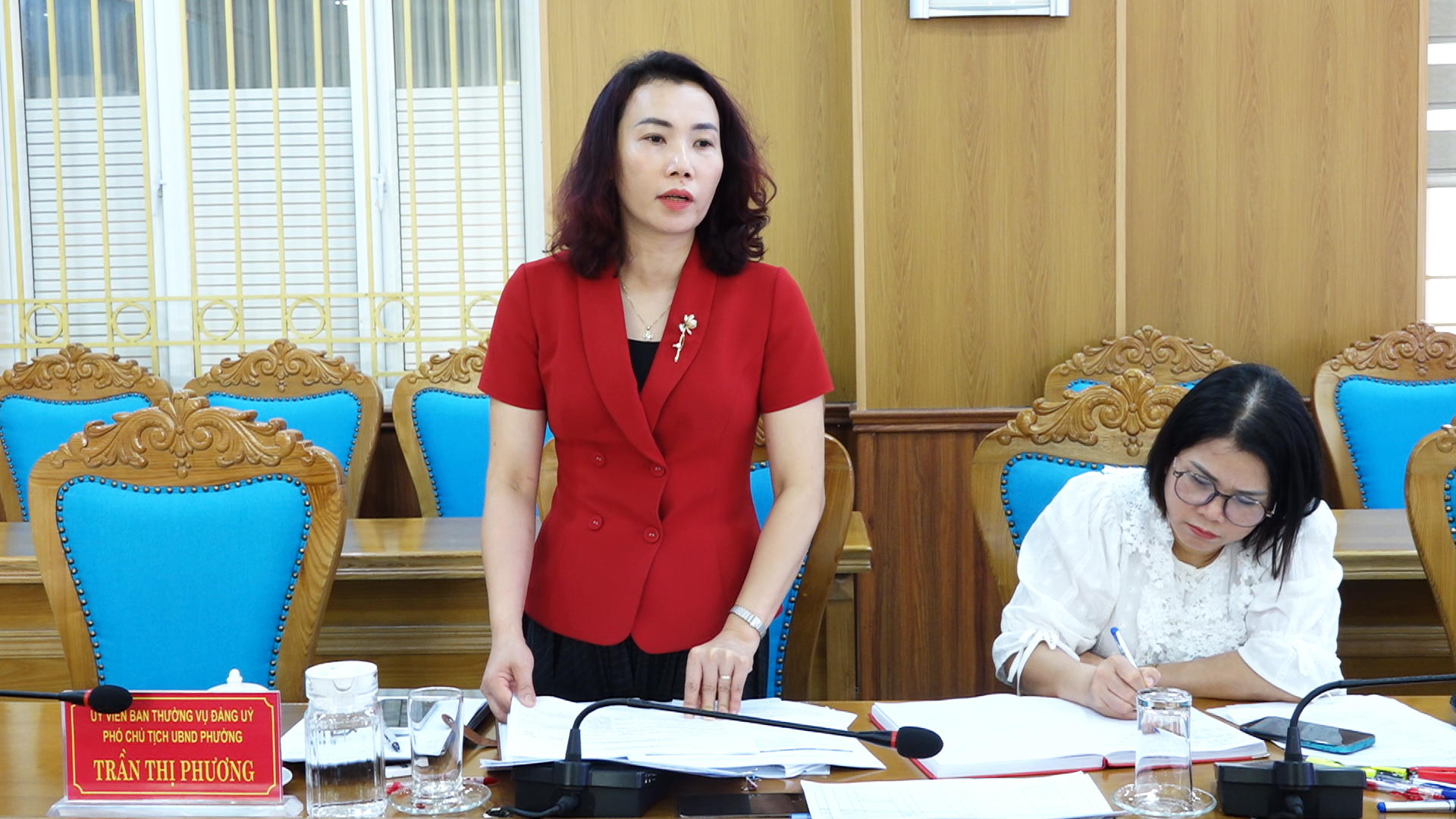 Ảnh: Đồng chí Trần Thị Phương - Ủy viên Ban Thường vụ Đảng ủy, Phó Chủ tịch UBND phường phát biểu tại Hội nghị