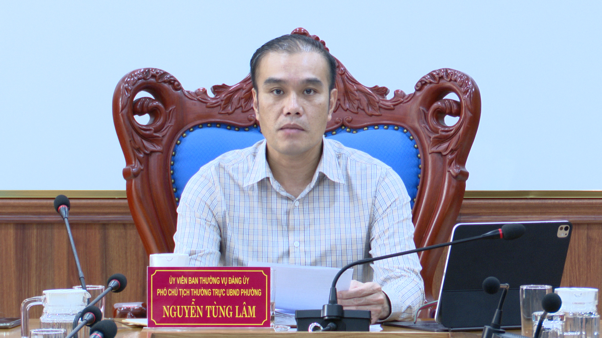 Đồng chí Nguyễn Tùng Lâm – Uỷ viên Ban Thường vụ Đảng uỷ, Phó Chủ tịch Thường trực UBND phường phát biểu kết luận cuộc họp