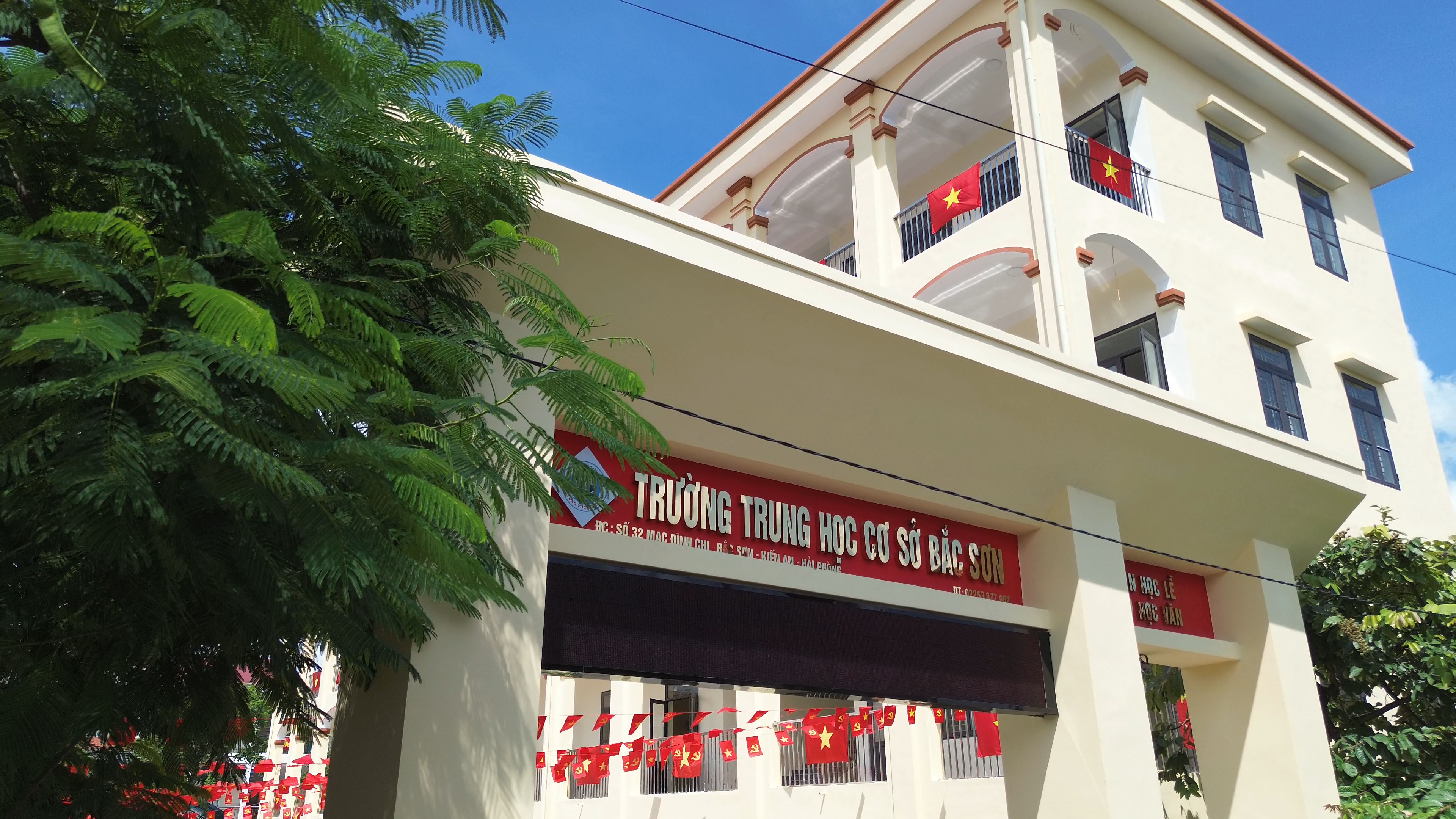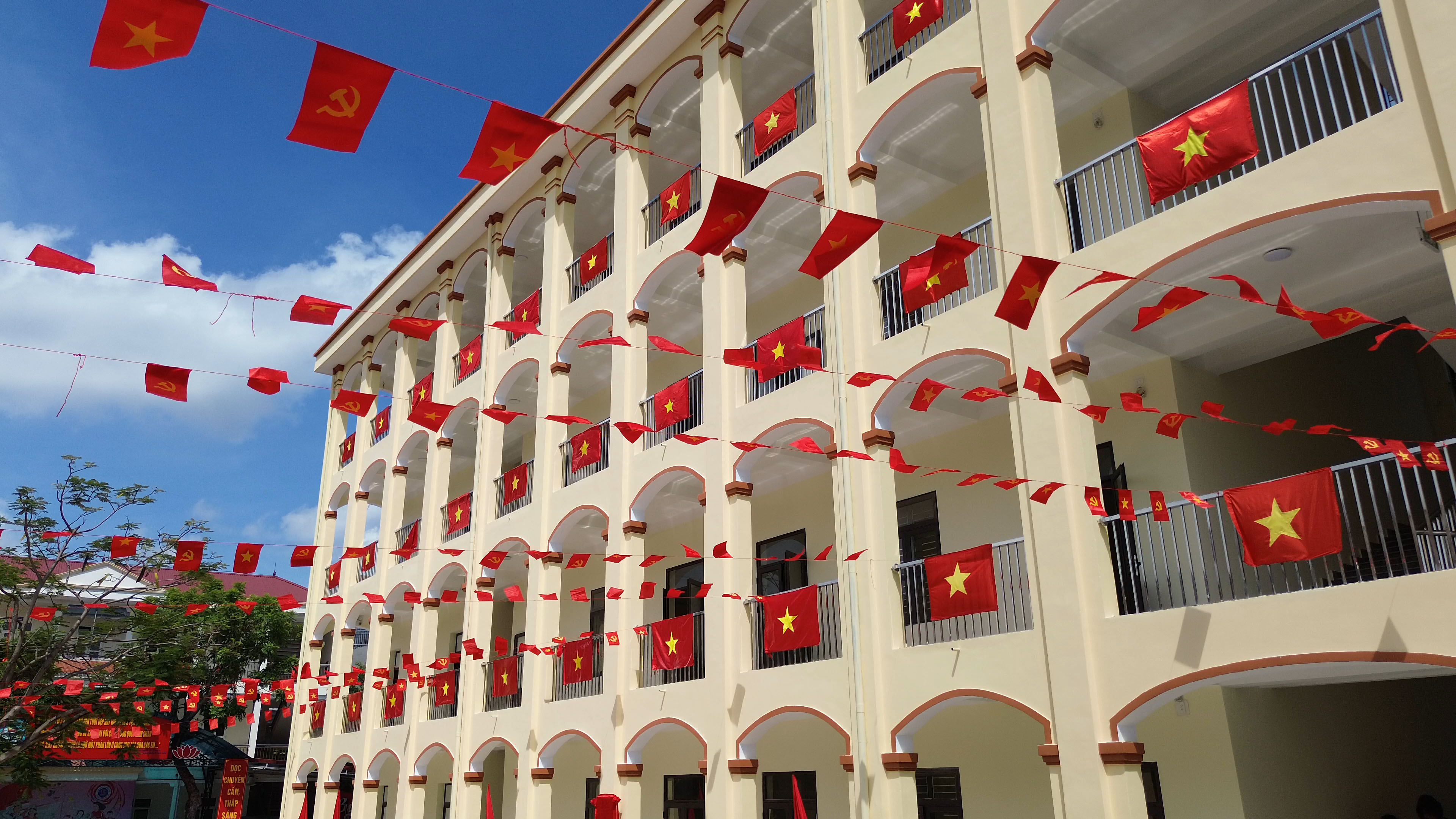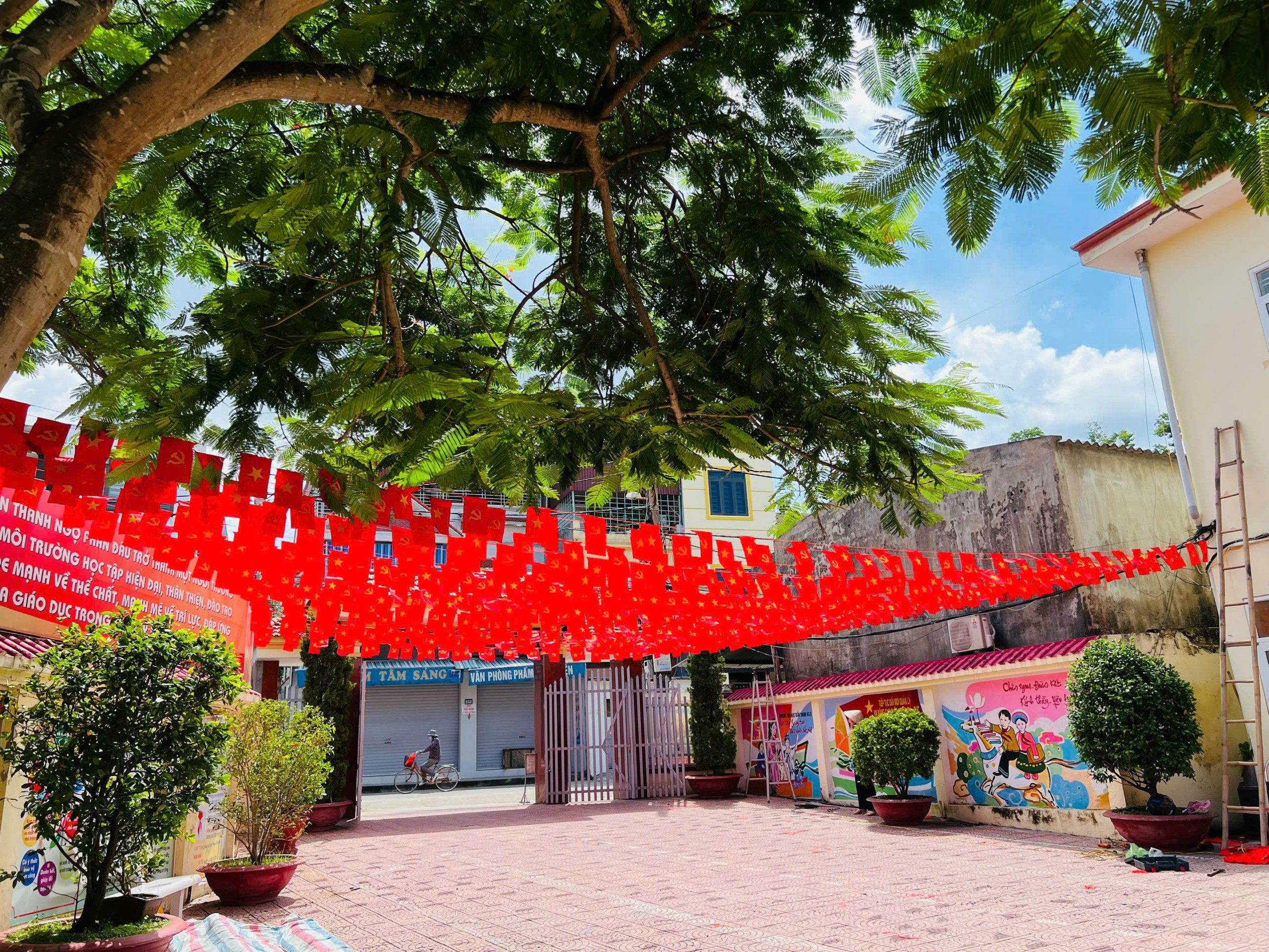 Các trường học trang trí rực rỡ màu cờ hưởng ứng Cuộc thi “Kiến An rợp bóng cờ”