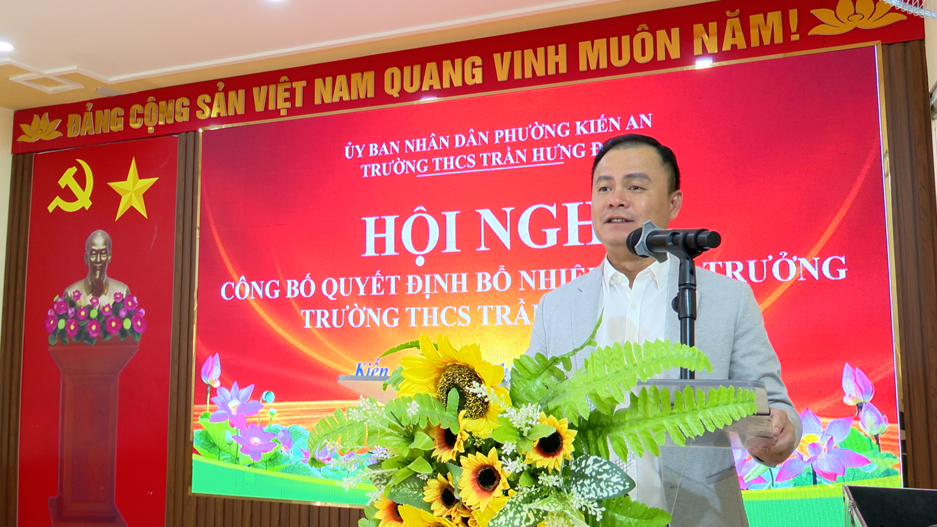 Tại hội nghị, đồng chí Nguyễn Phong Doanh – Phó Bí thư Đảng ủy, Chủ tịch Ủy ban nhân dân phường trao Quyết định, tặng hoa chúc mừng và phát biểu giao nhiệm vụ cho đồng chí Vũ Như Công - Hiệu trưởng Trường Trung học Cơ sở Trần Hưng Đạo. Đồng chí mong đồng chí Vũ Như Công trên cương vị công tác mới tiếp tục nỗ lực, phấn đấu; cùng với Ban Giám hiệu và đội ngũ giáo viên, nhân viên xây dựng tập thể đoàn kết, thống nhất cao; quan tâm nâng cao chất lượng đội ngũ, chất lượng giáo dục, đổi mới phương pháp giảng dạy, tích cực ứng dụng công nghệ thông tin, sáng tạo trong các hoạt động. Đồng chí Phó Bí thư Đảng ủy, Chủ tịch Ủy ban nhân dân phường cũng đề nghị đồng chí Hiệu trưởng làm tốt công tác tham mưu, phối hợp với các cơ quan liên quan trong công tác giảng dạy; đội ngũ giáo viên, nhân viên nhà trường tạo điều kiện, ủng hộ để đồng chí Hiệu trưởng, cũng như tập thể nhà trường hoàn thành xuất sắc nhiệm vụ được giao.