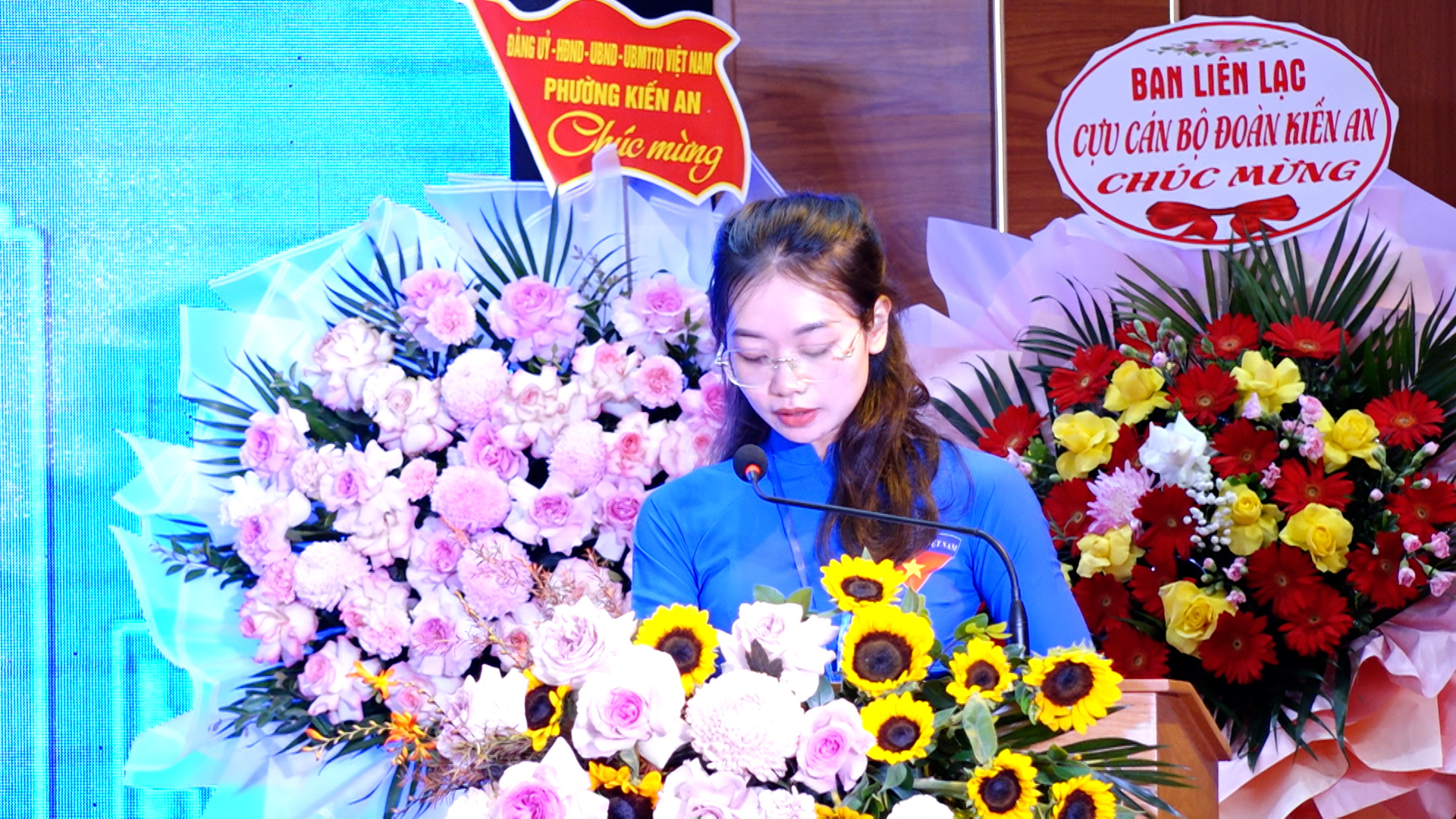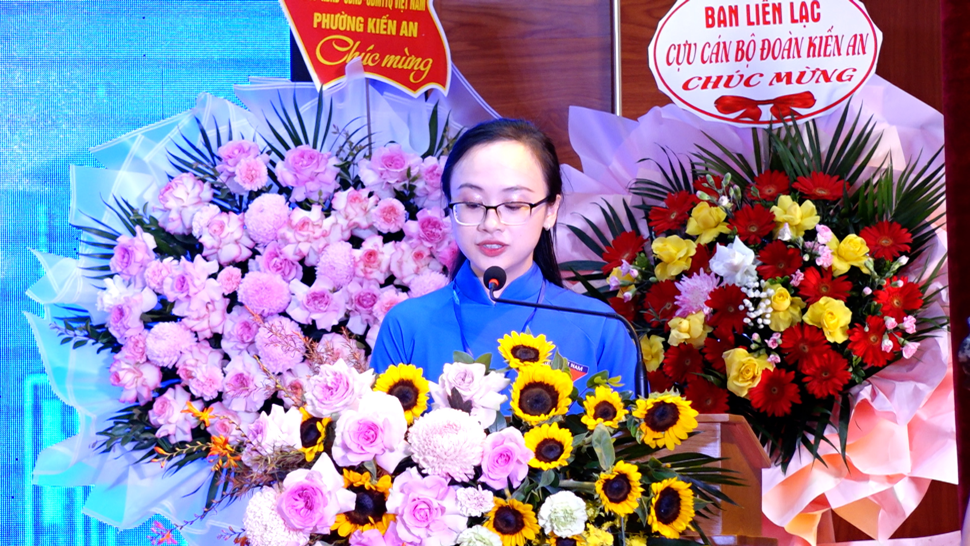 Phát biểu chỉ đạo Đại hội, đồng chí Nguyễn Tiến Mạnh – Phó Bí thư Thành Đoàn Hải Phòng và đồng chí Nguyễn Thiện Kim – Phó Bí thư Thường trực Đảng uỷ phường ghi nhận, biểu dương những kết quả của Đoàn Thanh niên cộng sản Hồ Chí Minh phường đạt được trong nhiệm kỳ qua. Nhấn mạnh một số nhiệm vụ trong nhiệm kỳ 2025-2030, đồng chí Phó Bí thư Thường trực Đảng uỷ phường đề nghị Đoàn Thanh niên Cộng sản Hồ Chí Minh phường tiếp tục đổi mới công tác giáo dục lý tưởng cách mạng, đạo đức, lối sống văn hóa cho đoàn viên, thanh thiếu nhi; tổ chức cho thanh thiếu nhi học tập và làm theo tư tưởng, đạo đức, phong cách Hồ Chí Minh, góp phần xây dựng lớp thanh niên phường Kiến An có tâm trong, trí sáng, hoài bão lớn. Tổ chức thực hiện các phong trào, phát huy vai trò của thanh niên trong xây dựng và bảo vệ Tổ quốc. Tập trung triển khai các công trình, phần việc thiết thực nhằm phát huy được tài năng, trí tuệ, tinh thần xung kích, sáng tạo, tình nguyện của thanh niên góp phần vào sự phát triển kinh tế, xã hội, an ninh, quốc phòng của phường, thành phố. Nâng cao vai trò, trách nhiệm của tổ chức Đoàn trong chăm lo, bảo vệ quyền, lợi ích chính đáng của thanh niên, đồng hành và là người bạn thân thiết, gắn bó của thanh niên, để các phong trào hành động cách mạng của Đoàn thực sự gần gũi với thanh niên và có sức sống trong cộng đồng. Tăng cường củng cố, xây dựng tổ chức Đoàn vững mạnh về chính trị, tư tưởng, tổ chức và hành động, mở rộng mặt trận tập hợp, đoàn kết thanh niên. Coi trọng chất lượng đoàn viên, từ đoàn viên mới kết nạp tới đoàn viên ưu tú giới thiệu cho Đảng xem xét kết nạp; xây dựng đội ngũ cán bộ đoàn có phẩm chất chính trị vững vàng, có trình độ, có kỹ năng nghiệp vụ, tiêu biểu về đạo đức, lối sống và tác phong công tác, là tấm gương sáng để thanh thiếu niên học tập. Bên cạnh đó, chú trọng phong trào “Bình dân học vụ số”, các hoạt động về chuyển đổi số, coi đó là “nền tảng”, “động lực” phát triển trong công tác Đoàn và phong trào thanh thiếu nhi. Đồng chí Phó Bí thư Thường trực Đảng uỷ phường tin tưởng, với tinh thần “Bản lĩnh - Tiên phong - Đổi mới - Sáng tạo”, Đoàn TNCS Hồ Chí Minh phường sẽ thực hiện xuất sắc, hiệu quả các chỉ tiêu, nhiệm vụ nhiệm kỳ 2025 - 2030, góp phần tích cực vào sự phát triển kinh tế - xã hội của phường và công tác Đoàn, phong trào thanh thiếu nhi thành phố.