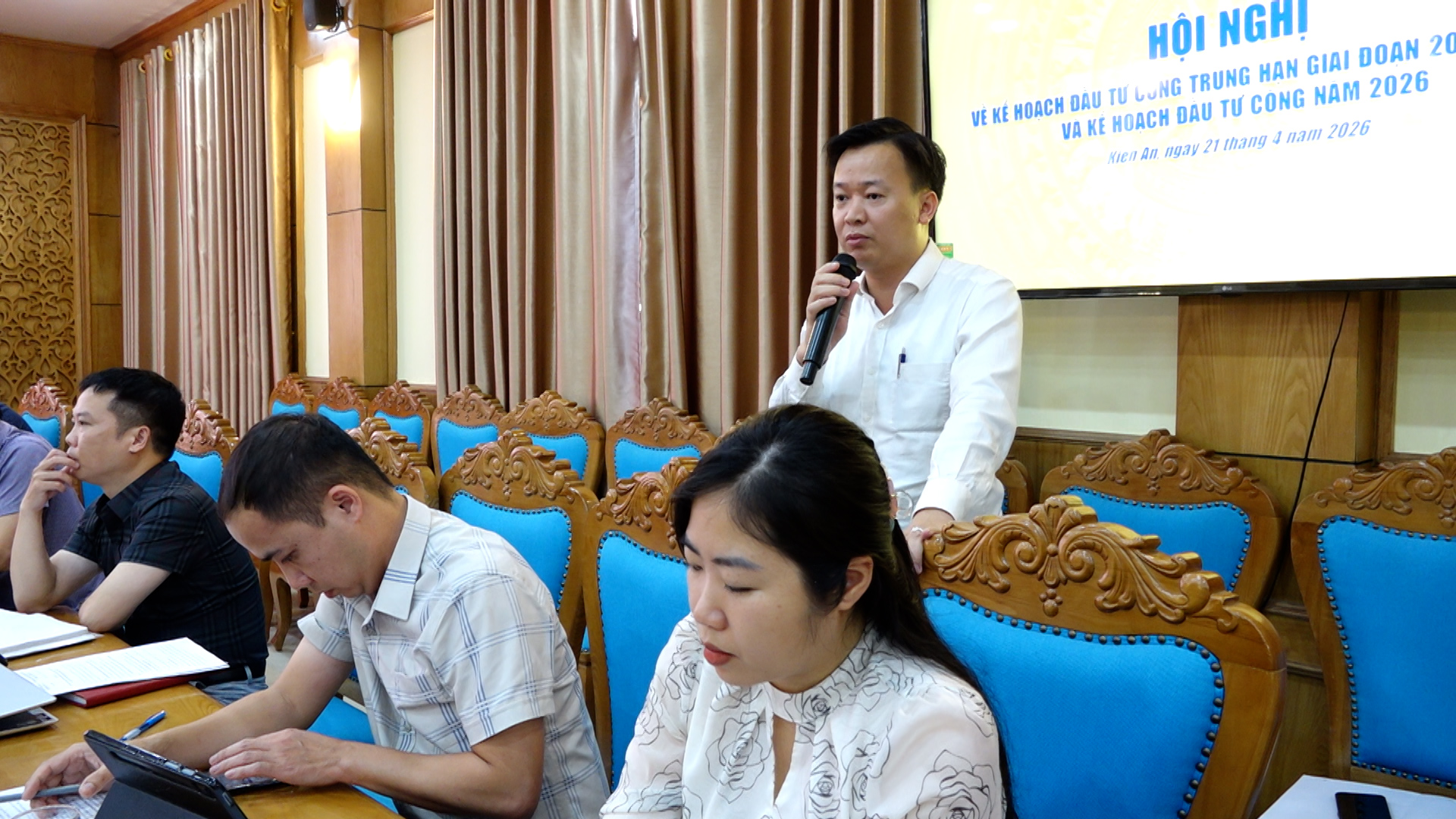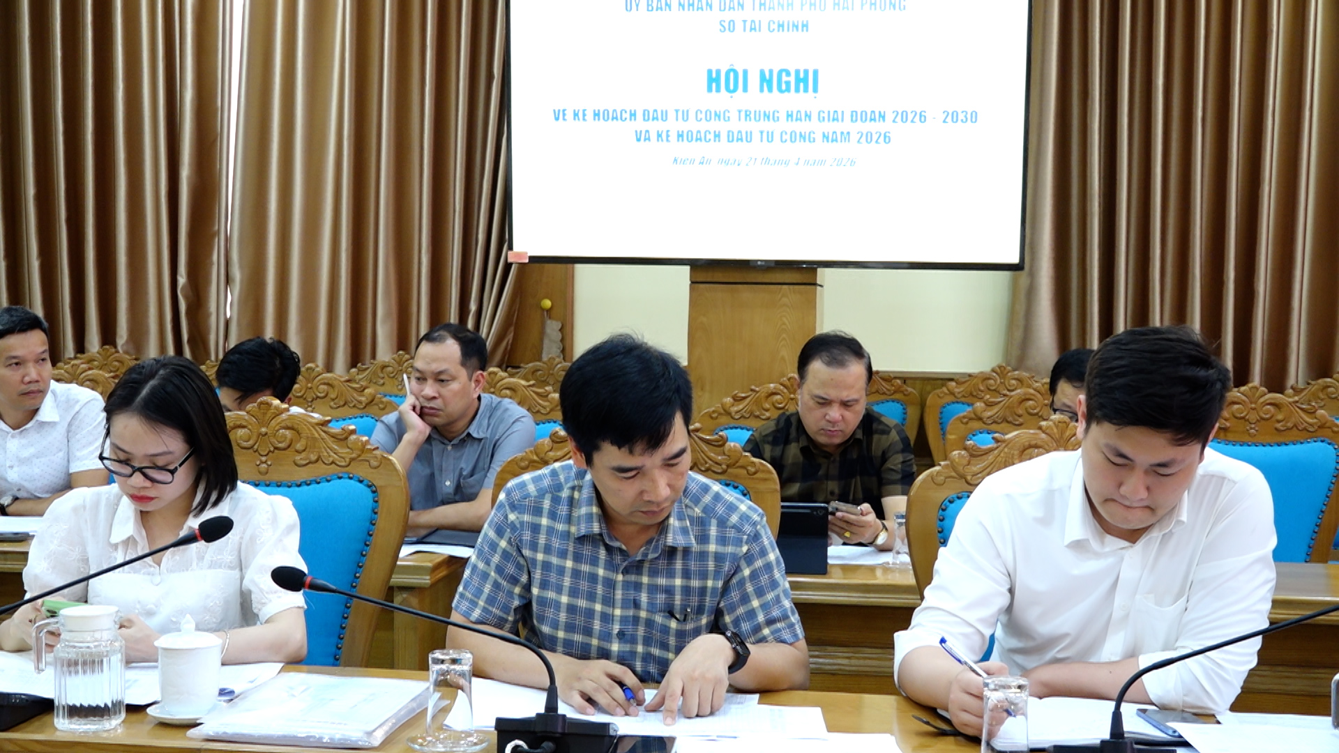 Chiều ngày 21/4, tại phường Kiến An, Sở Tài chính làm việc với 15 phường, xã trên địa bàn thành phố về kế hoạch đầu tư công trung hạn giai đoạn 2026 -2030 và giải ngân vốn đầu tư công năm 2026. Đồng chí Nguyễn Văn Hưng – Phó Giám đốc Sở Tài chính chủ trì Hội nghị. Về phía phường Kiến An có đồng chí Nguyễn Phong Doanh – Phó Bí thư Đảng ủy, Chủ tịch UBND phường; đồng chí Nguyễn Tùng Lâm - Ủy viên Ban Thường vụ Đảng ủy, Phó Chủ tịch Thường trực UBND phường; lãnh đạo UBND các xã, phường phụ trách lĩnh vực đầu tư công; lãnh đạo các phòng, đơn vị liên quan.