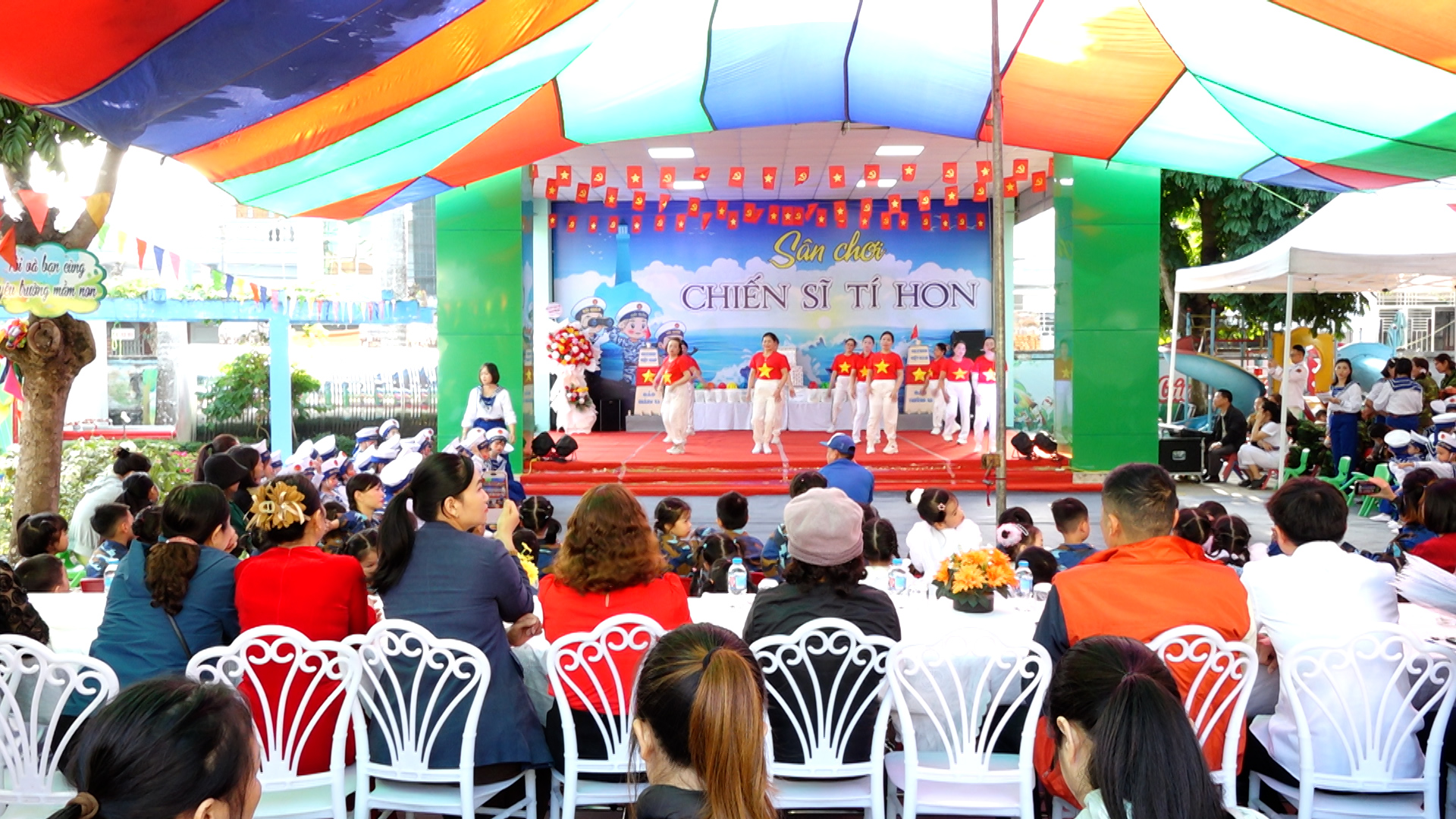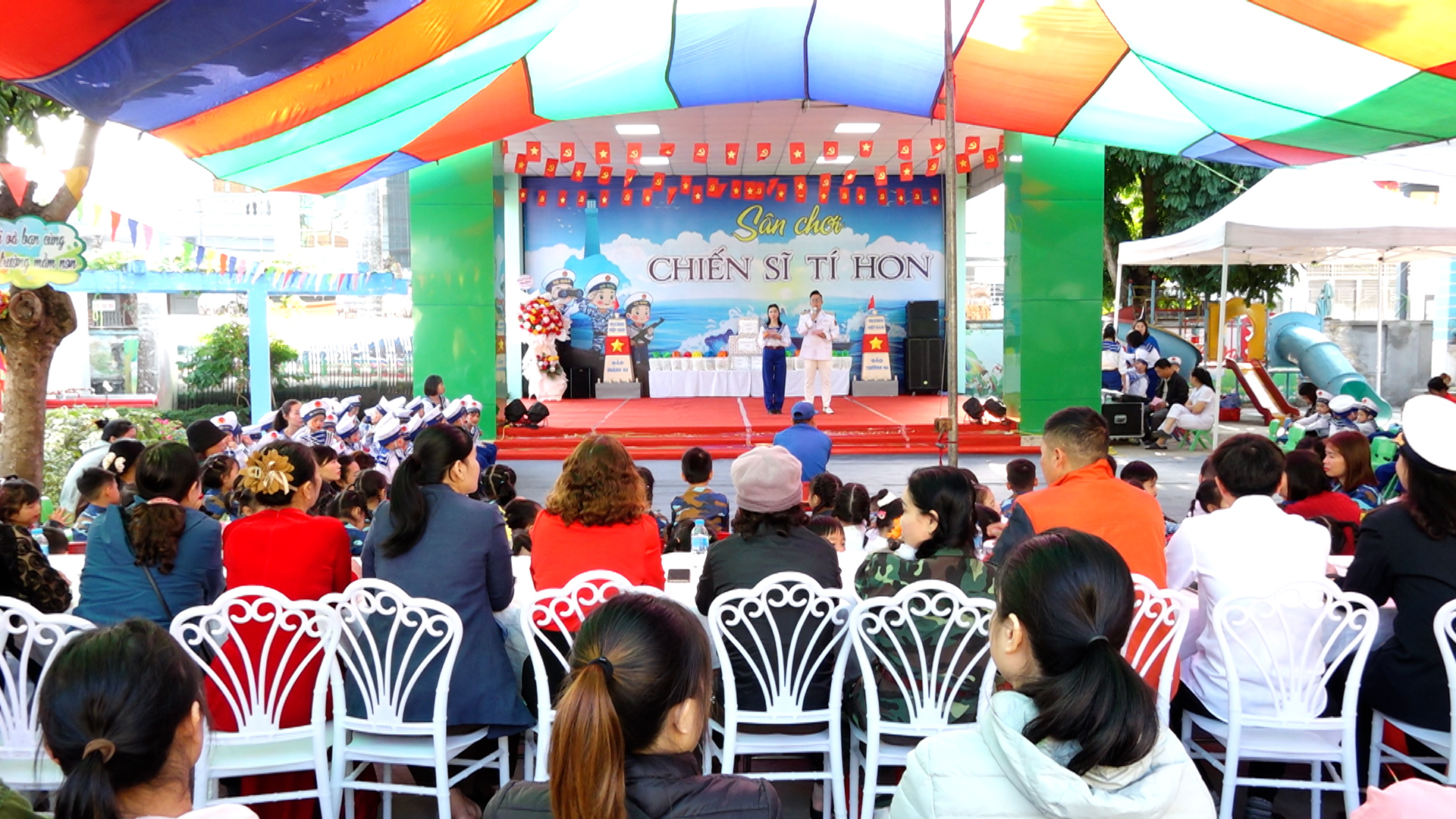 Phát biểu khai mạc chương trình, cô Phạm Thị Thu Thuỷ – Bí thư Chi bộ, Hiệu trưởng Trường Mầm non Đồng Hoà nhấn mạnh: sân chơi “Chiến sĩ tí hon” là hoạt động giáo dục ý nghĩa, góp phần giúp trẻ mầm non bước đầu hình thành tình yêu quê hương, đất nước, lòng kính trọng và biết ơn đối với các thế hệ cha anh, đặc biệt là hình ảnh cao đẹp của Bộ đội Cụ Hồ; đồng thời tạo cơ hội để các bé được giao lưu, rèn luyện thể chất, phát triển kỹ năng và sự tự tin.