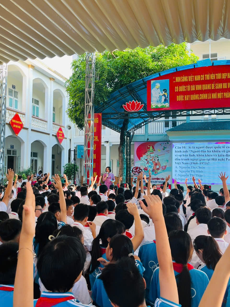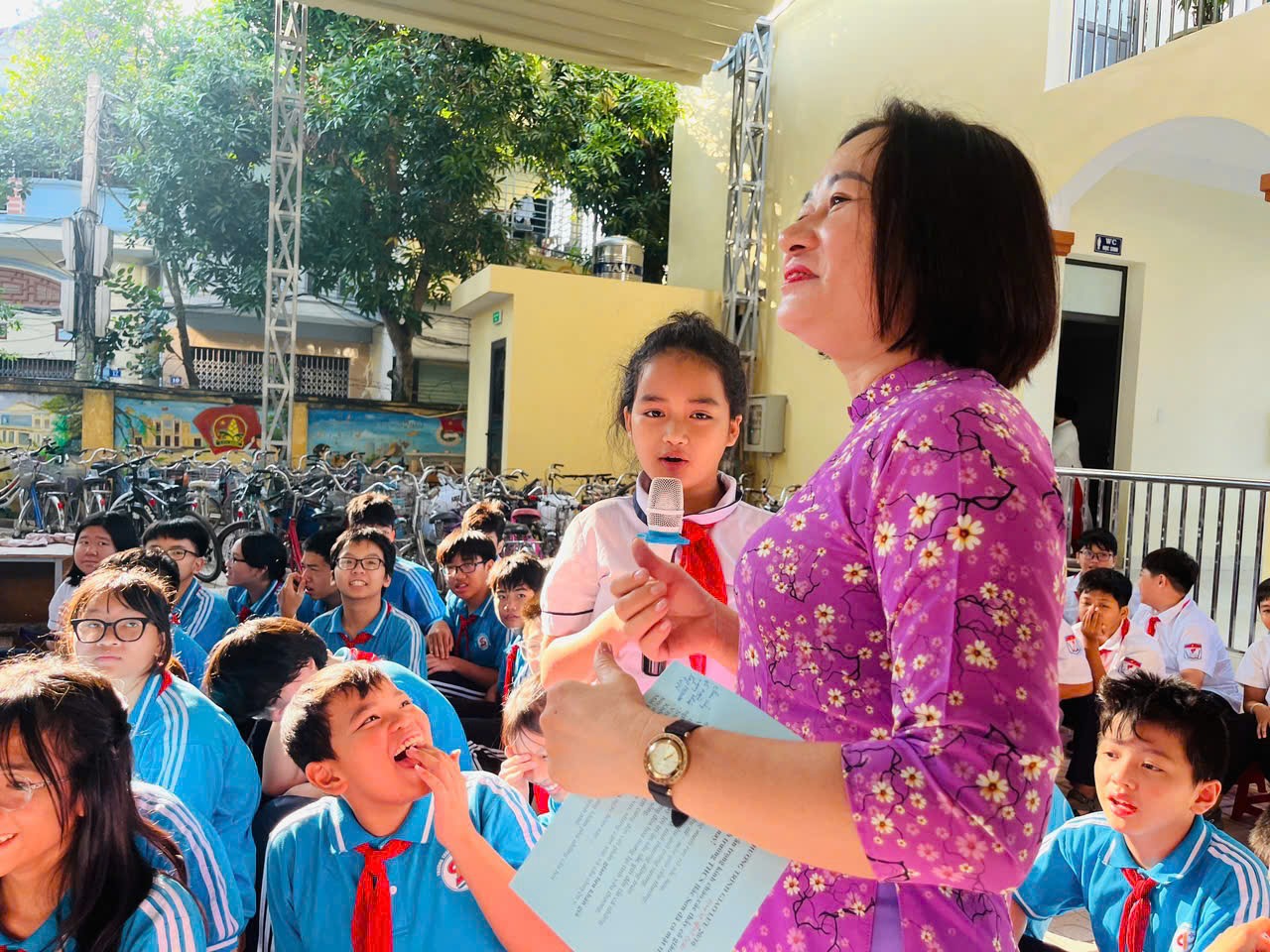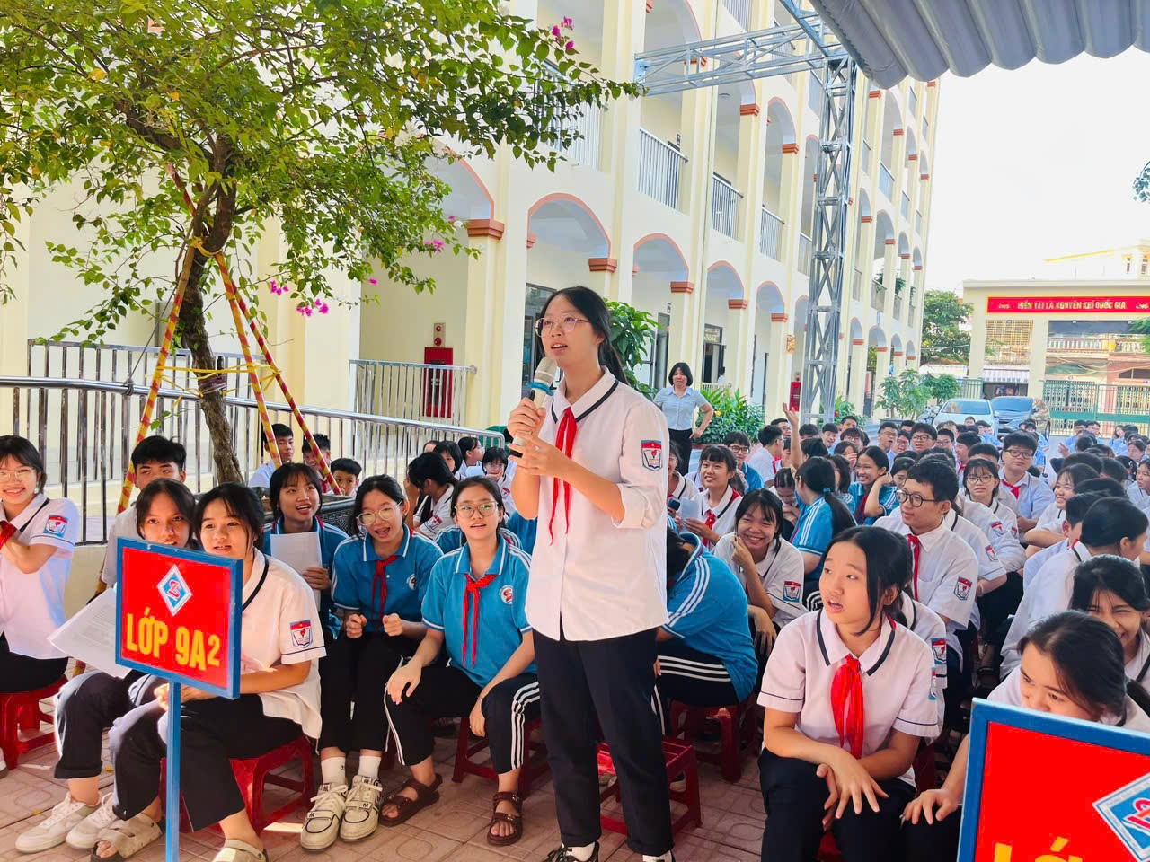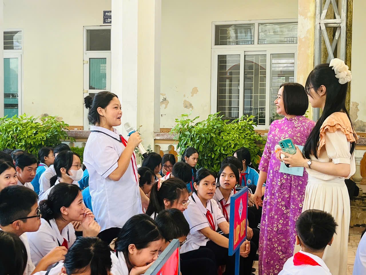 Các em học sinh sôi nổi tham gia giao lưu tìm hiểu về truyền thống tốt đẹp của phụ nữ Việt Nam