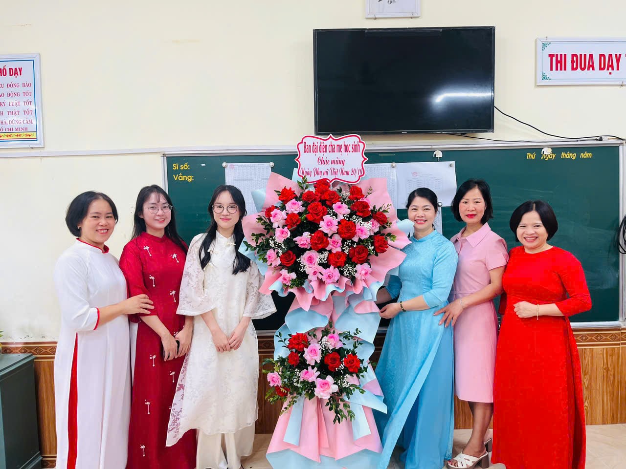 Nhân dịp này, Ban đại diện cha mẹ học sinh nhà trường tặng hoa chúc mừng các cô giáo nhân ngày Phụ nữ Việt Nam 20/10, thể hiện tình cảm trân trọng và lời cảm ơn sâu sắc đối với những người đã và đang miệt mài vì sự nghiệp giáo dục.