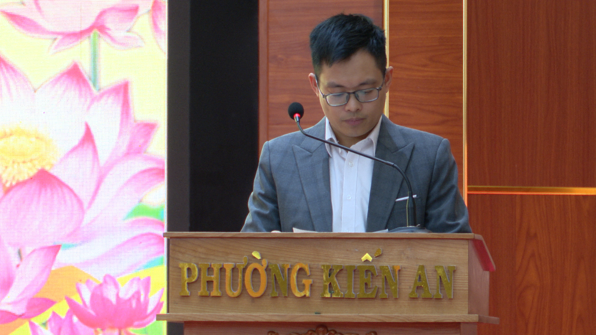 Đồng chí Phạm Văn Tuấn – Phó Trưởng phòng Kinh tế, Hạ tầng và Đô thị phường trình bày nội dung Quy chế phối hợp về phân loại chất thải rắn sinh hoạt tại nguồn trên địa bàn phường