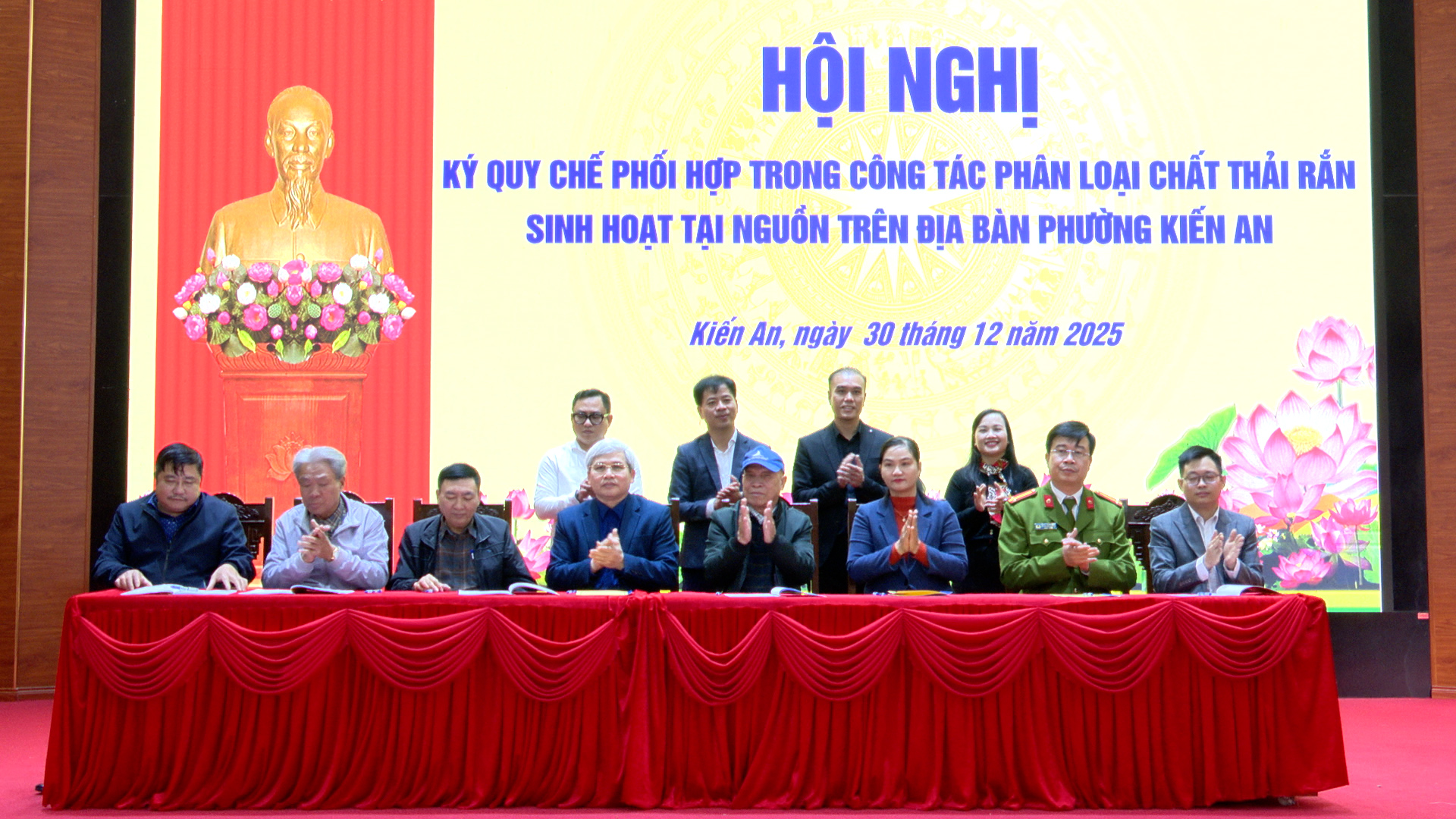 Phường Kiến An có trên 67.000 nhân khẩu ở 43 Tổ dân phố, cùng với quá trình đô thị hóa nhanh, lượng chất thải rắn sinh hoạt phát sinh ngày càng nhiều. Trước yêu cầu thực tiễn đặt ra, việc triển khai phân loại rác thải rắn sinh hoạt tại nguồn là nhiệm vụ cần thiết, đòi hỏi sự vào cuộc đồng bộ của cả hệ thống chính trị, góp phần nâng cao hiệu quả quản lý nhà nước về bảo vệ môi trường, xây dựng đô thị văn minh. Quy chế phối hợp được ký kết giữa Phòng Kinh tế, Hạ tầng và Đô thị phường, Công an phường, các Tổ dân phố và Công ty Cổ phần Công trình công cộng và Xây dựng Hải Phòng, xác định rõ nguyên tắc, phương thức phối hợp; đồng thời quy định cụ thể nhiệm vụ, trách nhiệm của từng cơ quan, đơn vị trong công tác tuyên truyền, hướng dẫn phân loại rác tại nguồn, thu gom, vận chuyển và xử lý chất thải rắn sinh hoạt theo đúng quy định.