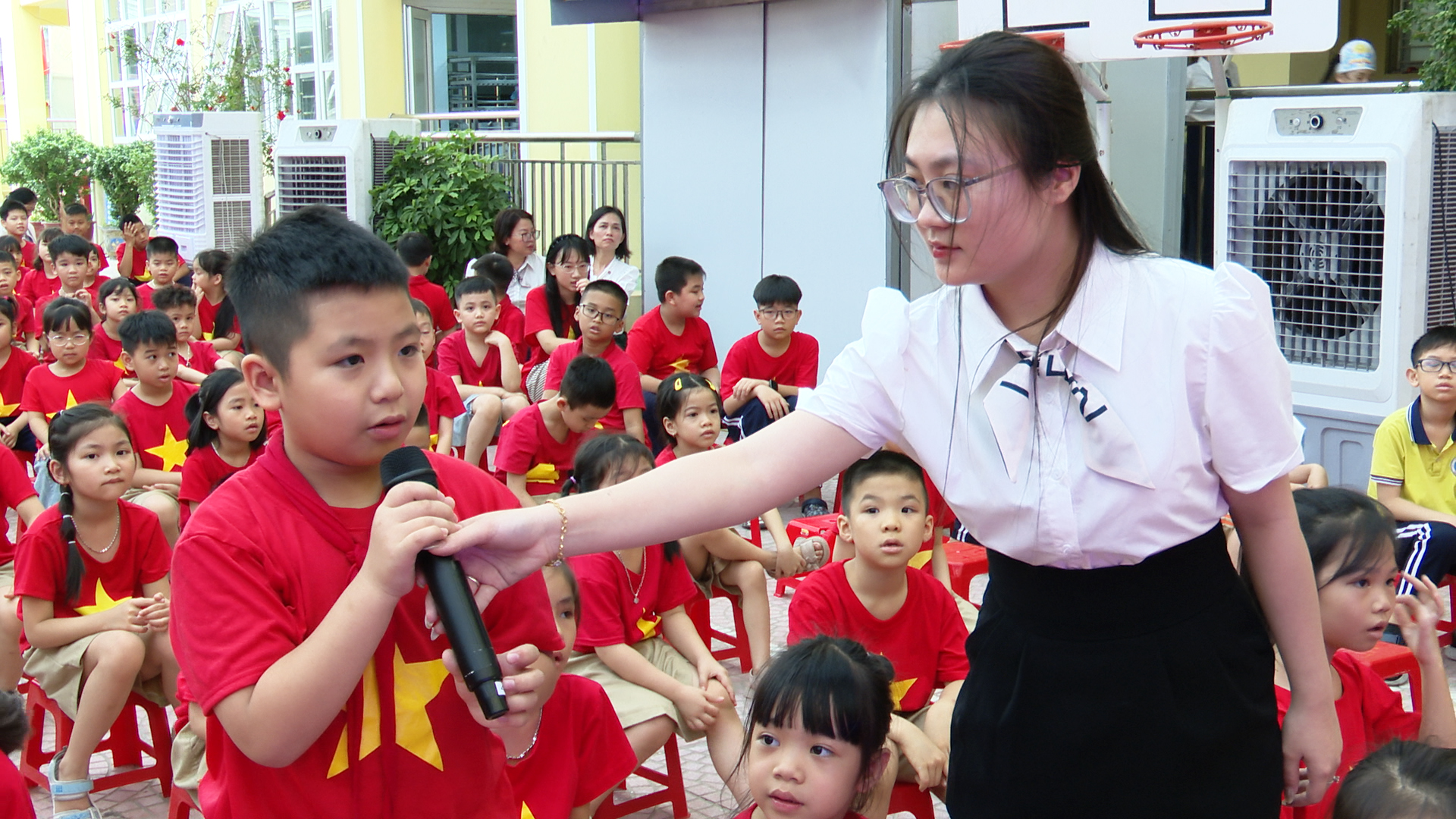 Các em học sinh Liên đội Tiểu học Đồng Hoà hào hứng tham gia phần chơi dành cho khán giả