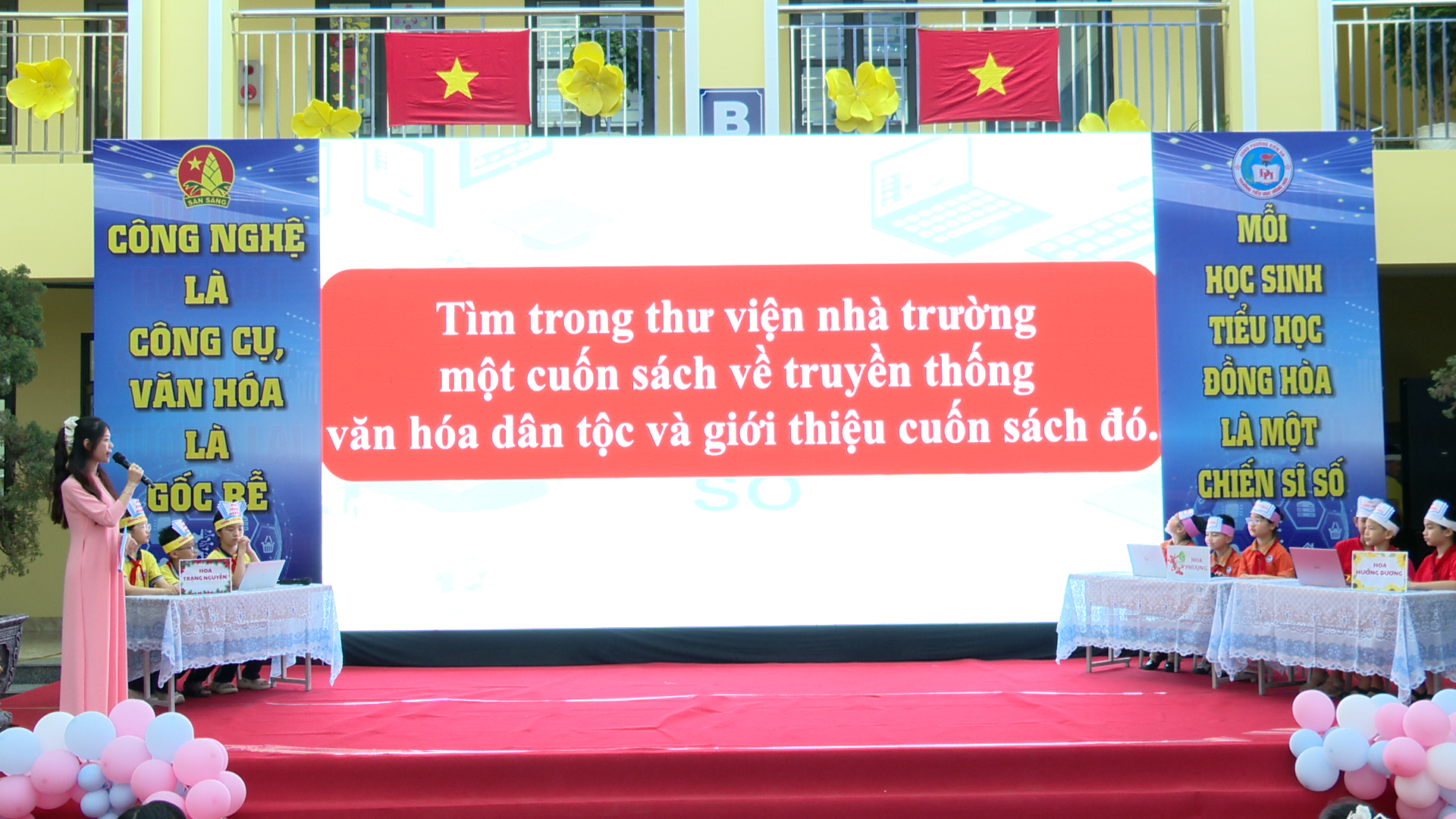 Trong phần 2 “Thư viện số”, 3 đội chơi đã truy cập thư viện số của trường và thực hiện thao tác đặt mượn, thử thách tìm cuốn sách về truyền thống văn hóa dân tộc. Qua đó không chỉ giúp các em tiếp cận với công nghệ số, bồi đắp cho các em niềm đam mê đọc sách mà còn giúp các em hiểu thêm giá trị của truyền thống văn hóa dân tộc.