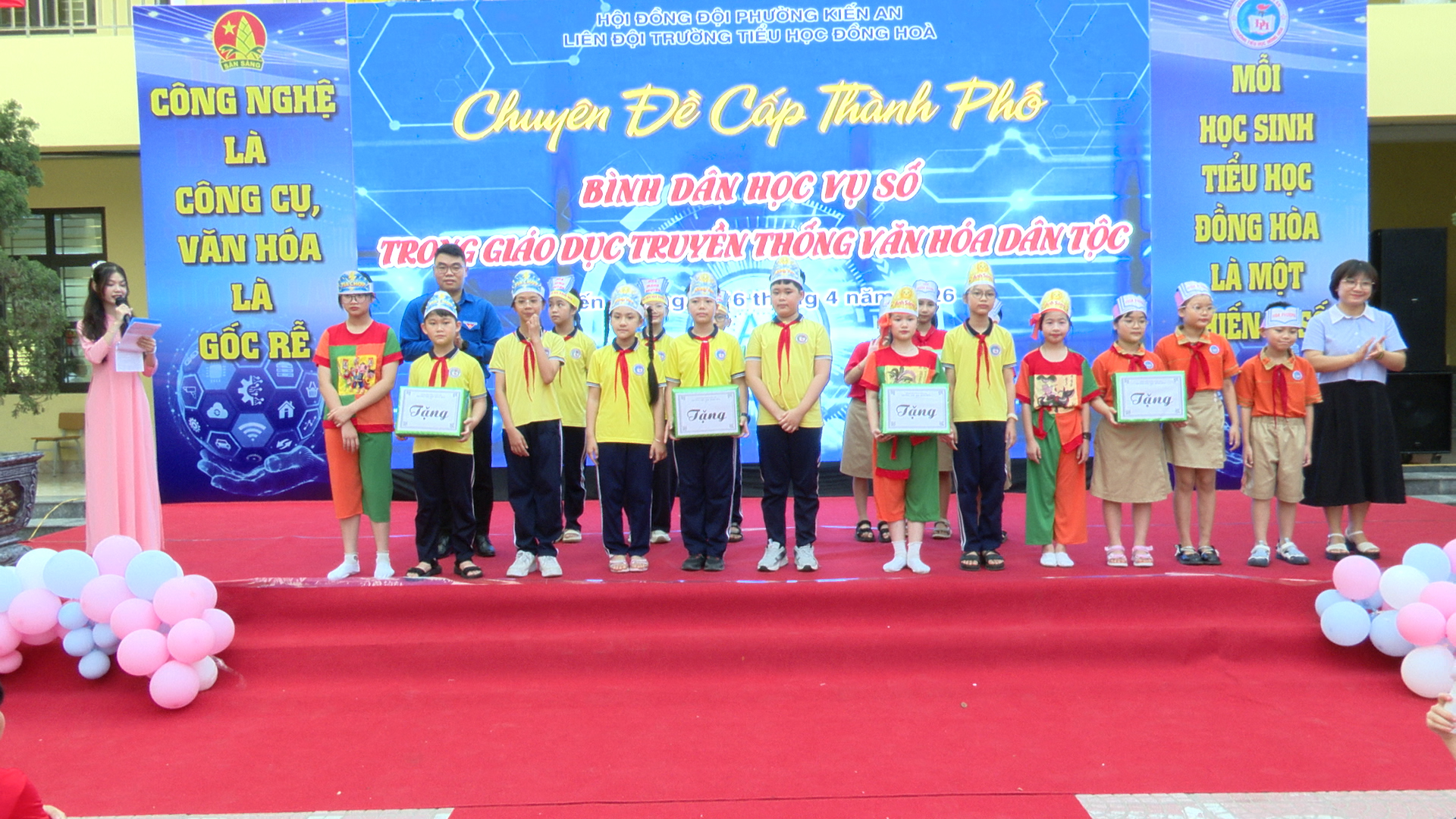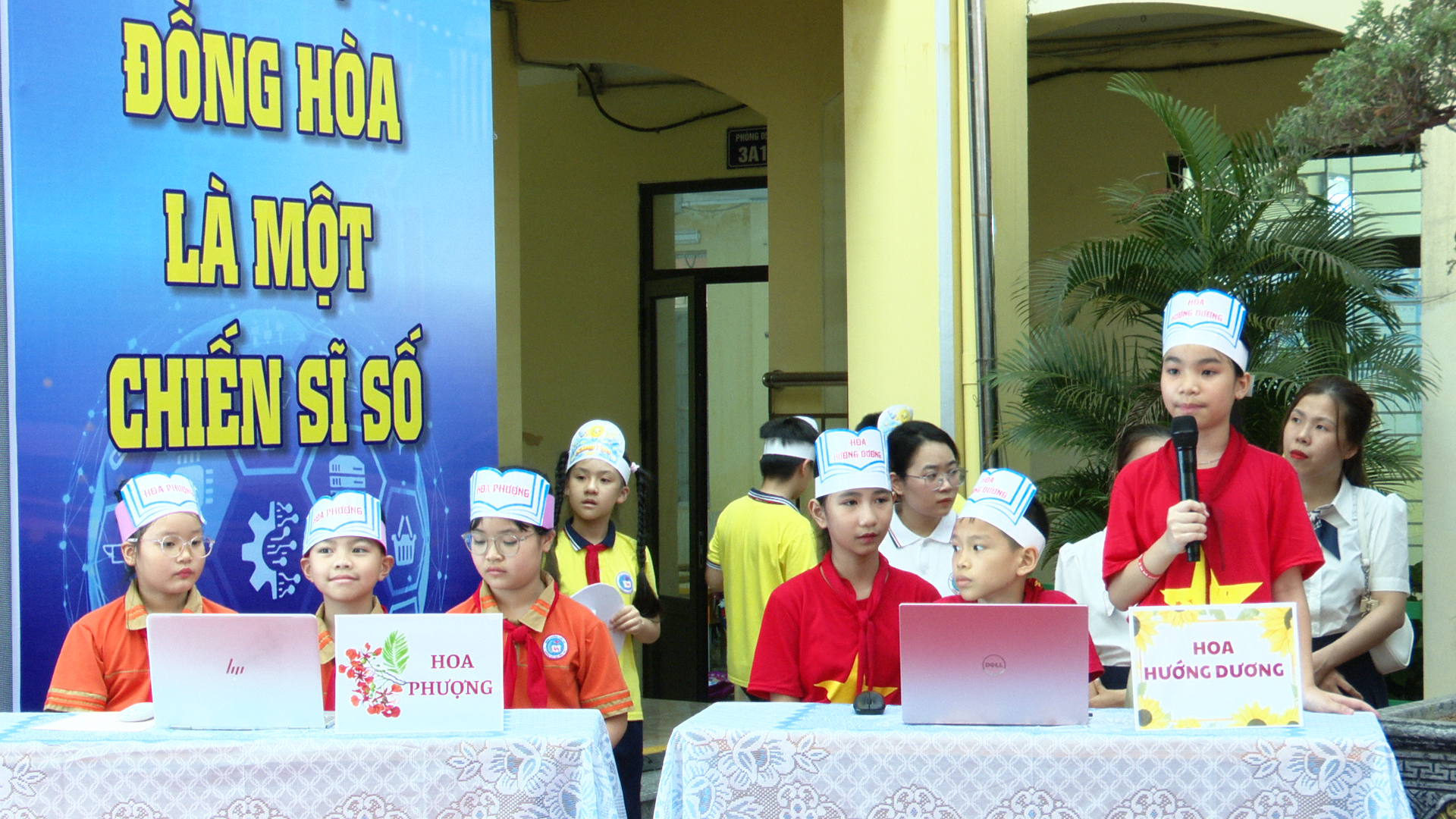 Sáng ngày 16/4, Liên đội trường Tiểu học Đồng Hòa tổ chức chuyên đề Đội cấp thành phố “Bình dân học vụ số trong giáo dục truyền thống văn hóa dân tộc”. Tới dự có đồng chí Vũ Xuân Phúc - Ủy viên Ban Thường vụ Đảng ủy, Chủ tịch Ủy ban Mặt trận Tổ quốc Việt Nam phường; Chuyên viên Ban công tác Đoàn và thanh thiếu nhi Cơ quan Ủy ban Mặt trận Tổ quốc Việt Nam thành phố.