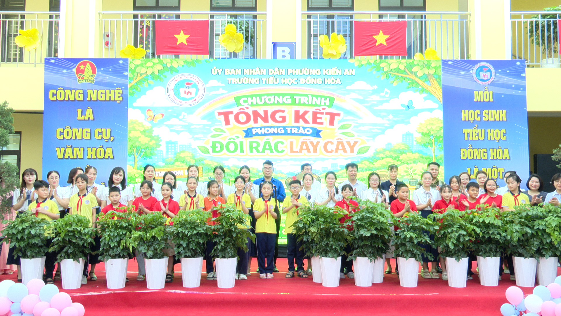 Trường Tiểu học Đồng Hoà biểu dương, khen thưởng các em học sinh tích cực tham gia phong trào “Đổi rác lấy cây xanh” và nhân đạo từ thiện