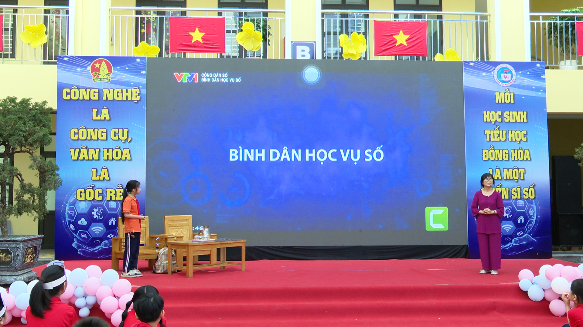 Chuyên đề gồm 3 phần. Ở phần 1 “Tái hiện lịch sử - Kết nối hiện tại”, với vở kịch ngắn: Chiếc máy tính của ông và “cây bút thần” của cháu, qua sự thể hiện tự tin, sáng tạo của các em đã giúp hiểu thêm về phong trào “Bình dân học vụ” thời ông cha để "diệt giặc dốt, xóa mù chữ"; phong trào "Bình dân học vụ số" để trở thành "Công dân toàn cầu". Qua vở kịch còn giáo dục các em học sinh Liên đội Tiểu học Đồng Hoà biết sử dụng máy tính an toàn; Học tập sáng tạo; Ứng xử văn minh trên môi trường số.